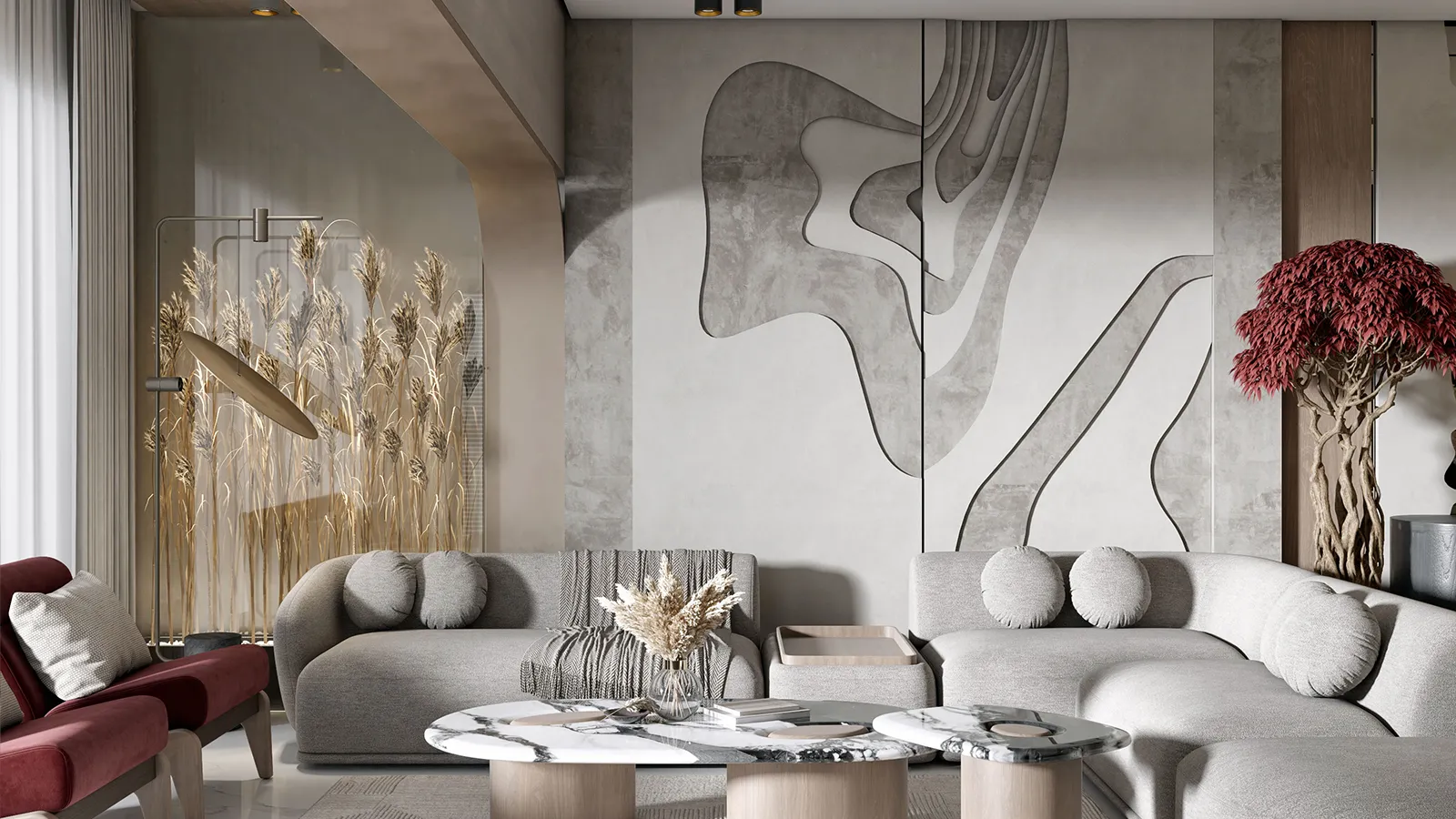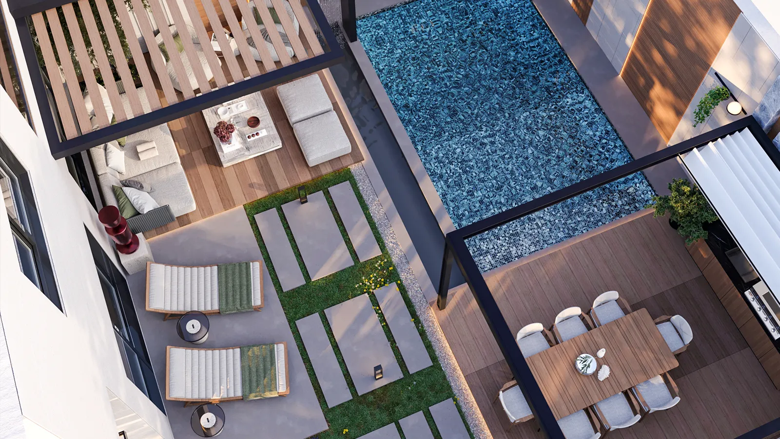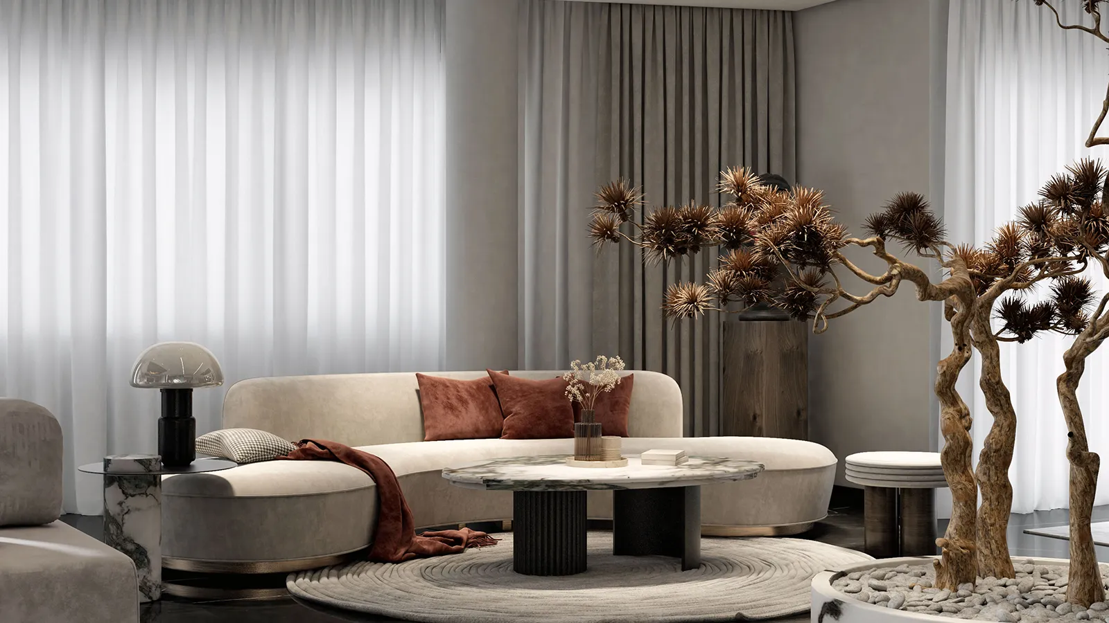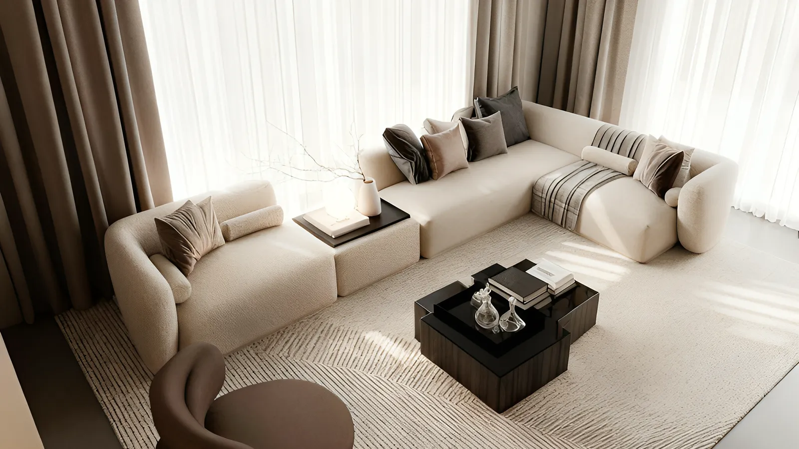 Custom furnishings, material palettes, and interior touches that elevate the final layer of every space.