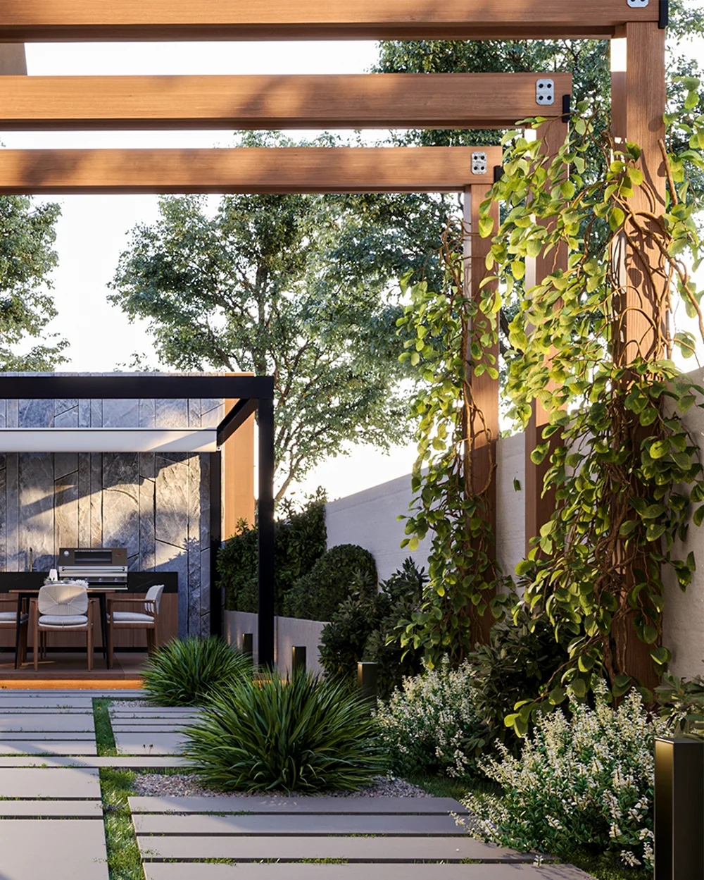 Designing outdoor environments that complement the architectural form—integrating greenery, circulation, and visual balance.