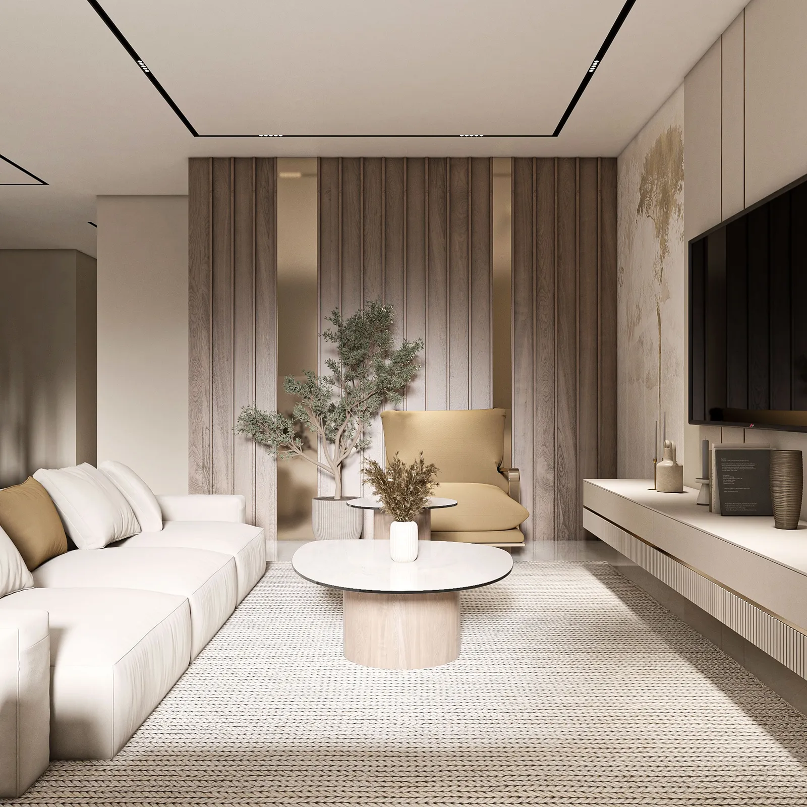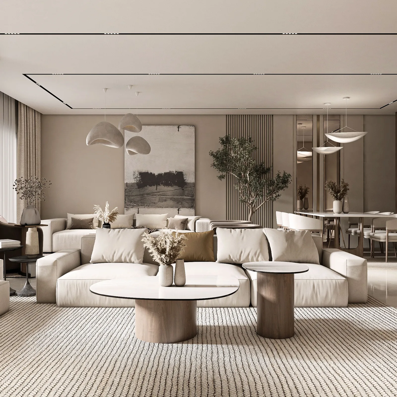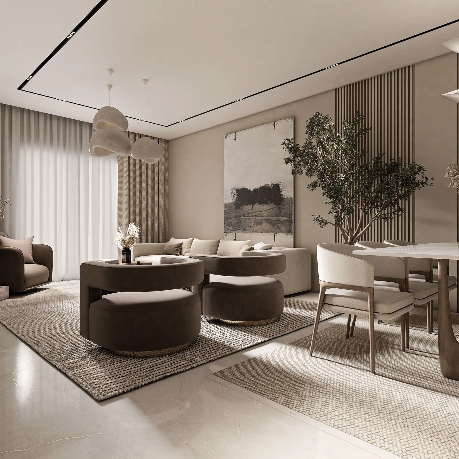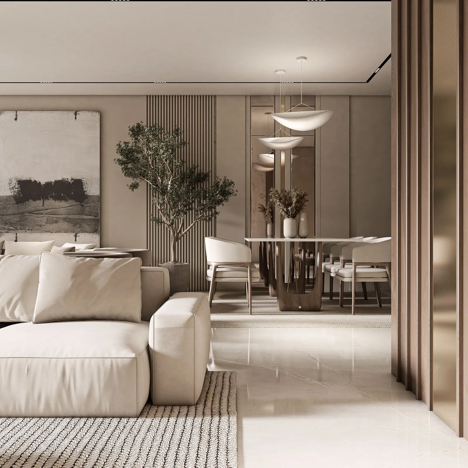 Sleek Modern Elegance — a refined and contemporary aesthetic characterized by clean lines, sophisticated textures, and a harmonious blend of natural and luxurious elements, designed for comfortable daily living.