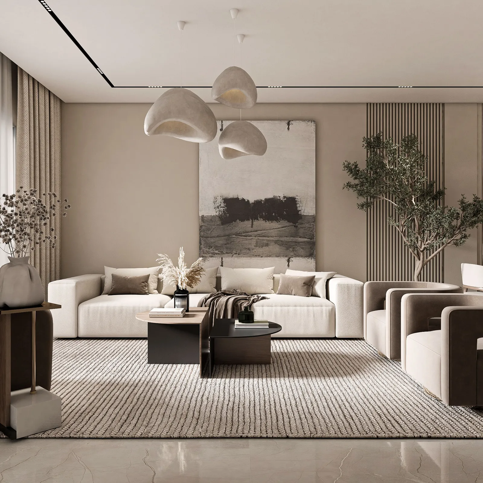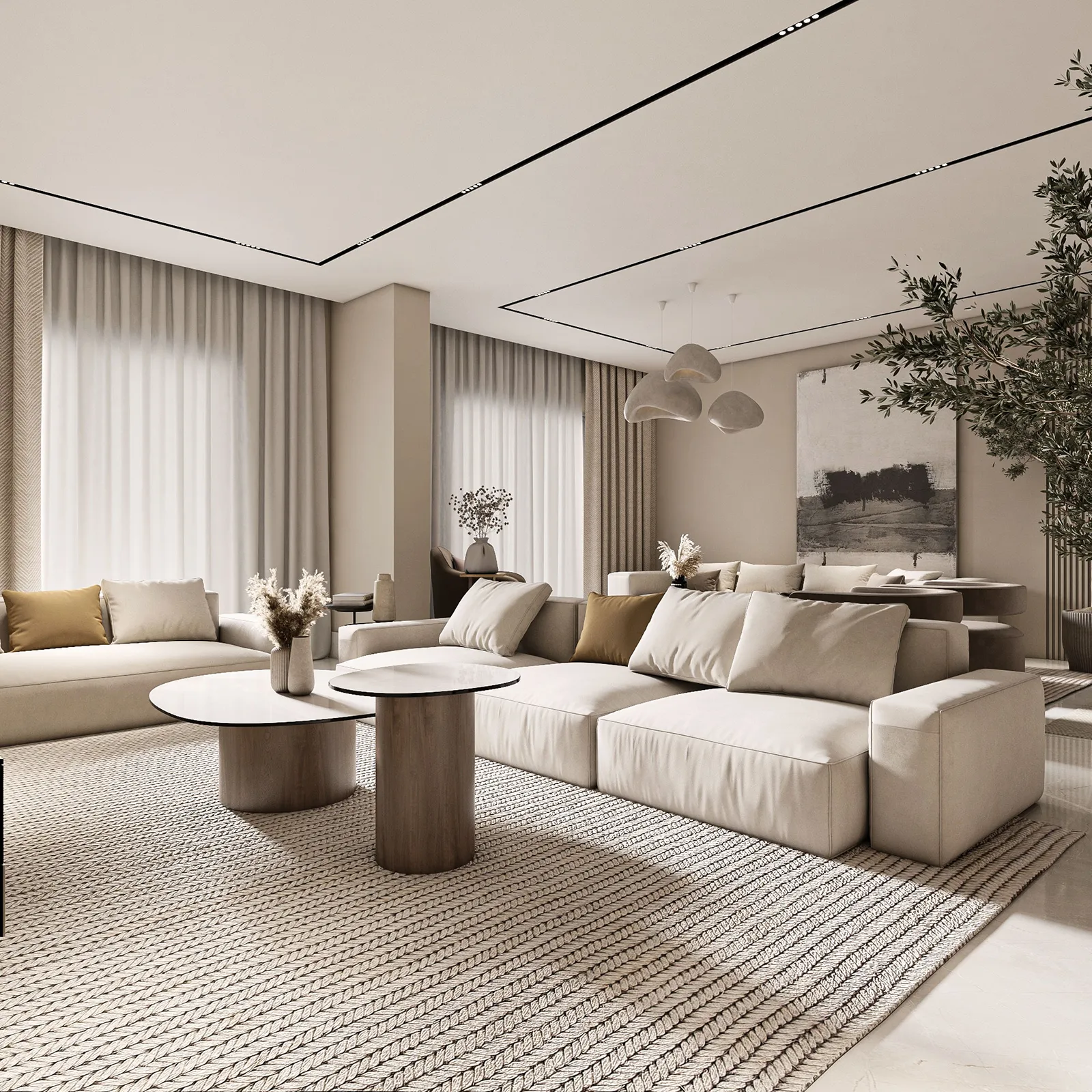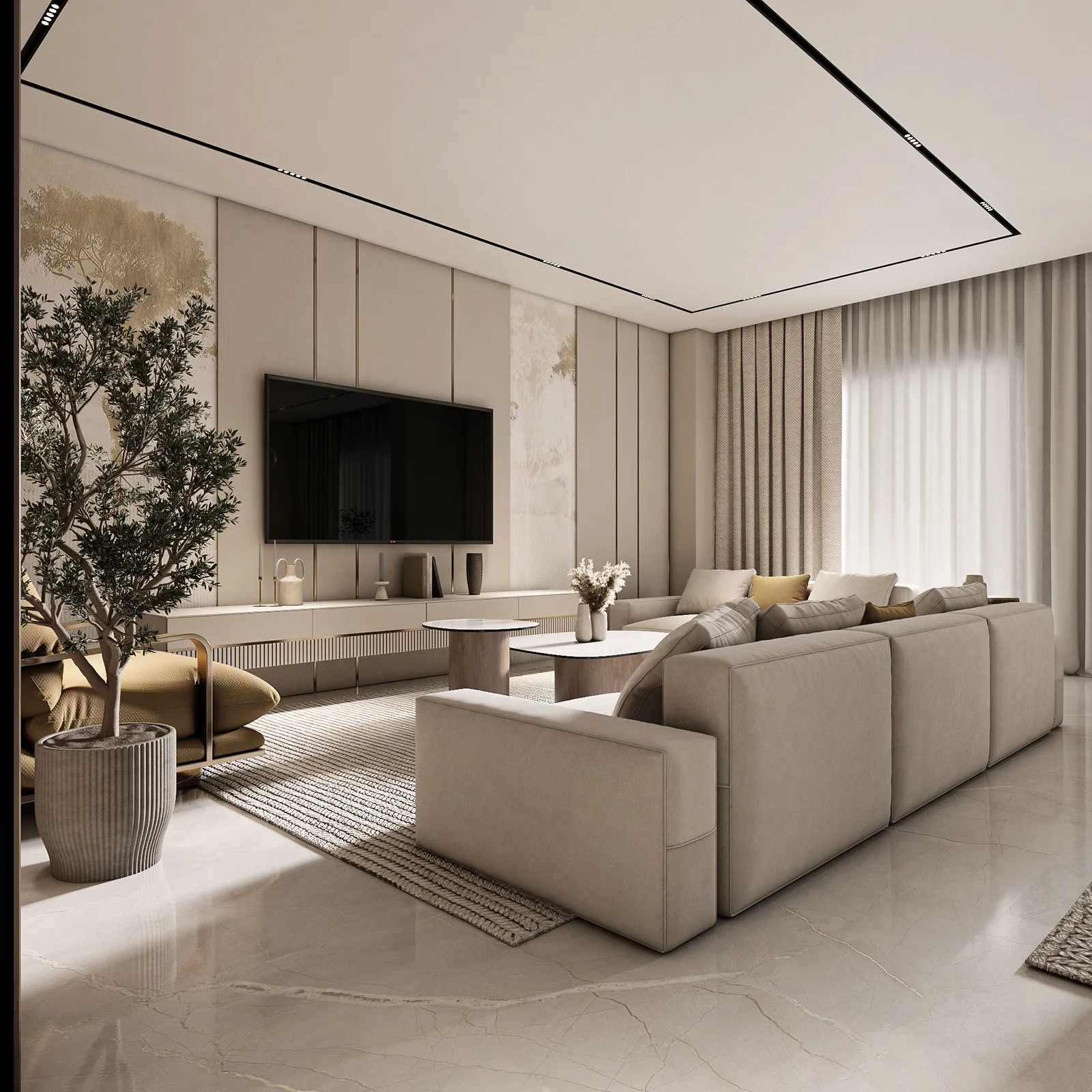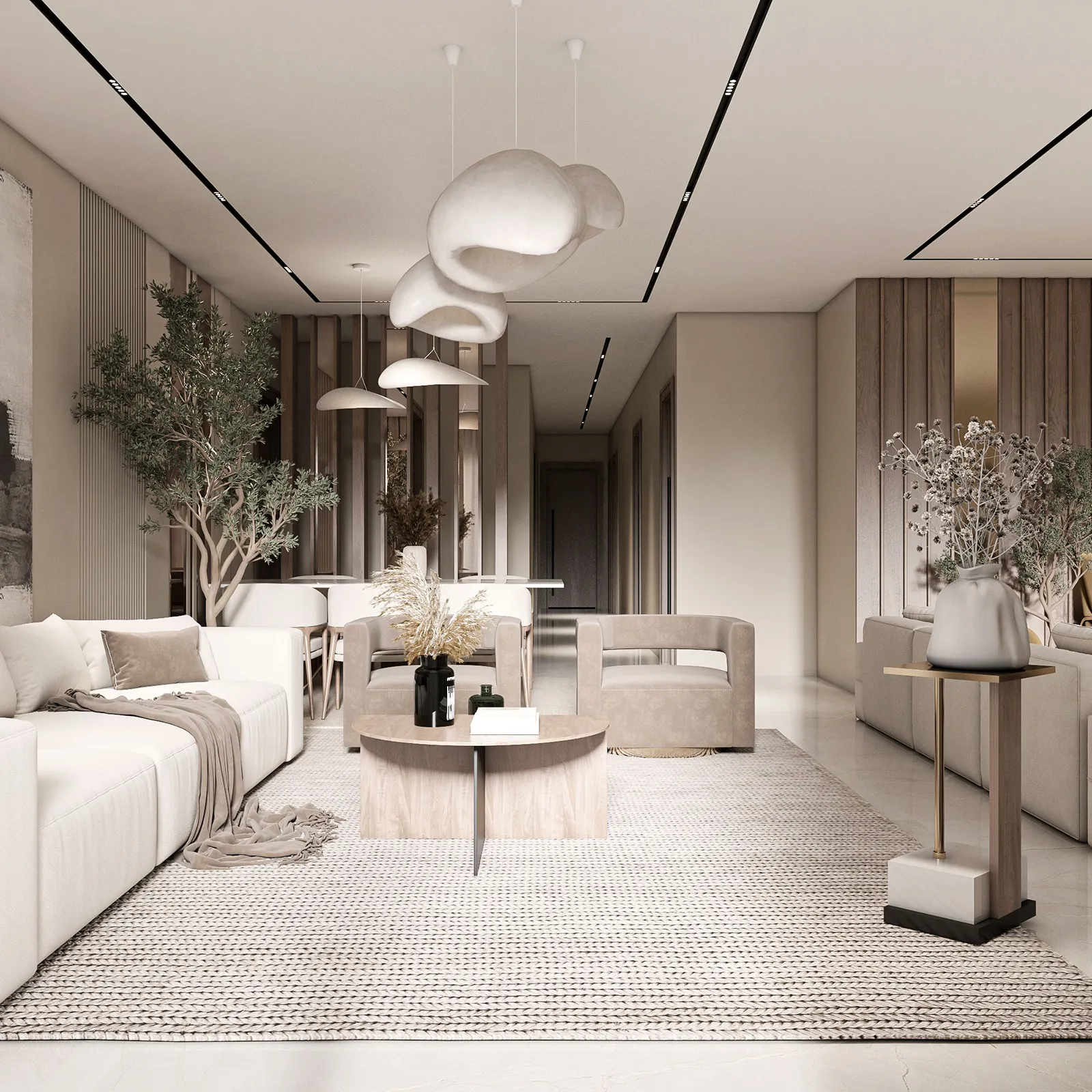 Sleek Modern Elegance — a refined and contemporary aesthetic characterized by clean lines, sophisticated textures, and a harmonious blend of natural and luxurious elements, designed for comfortable daily living.