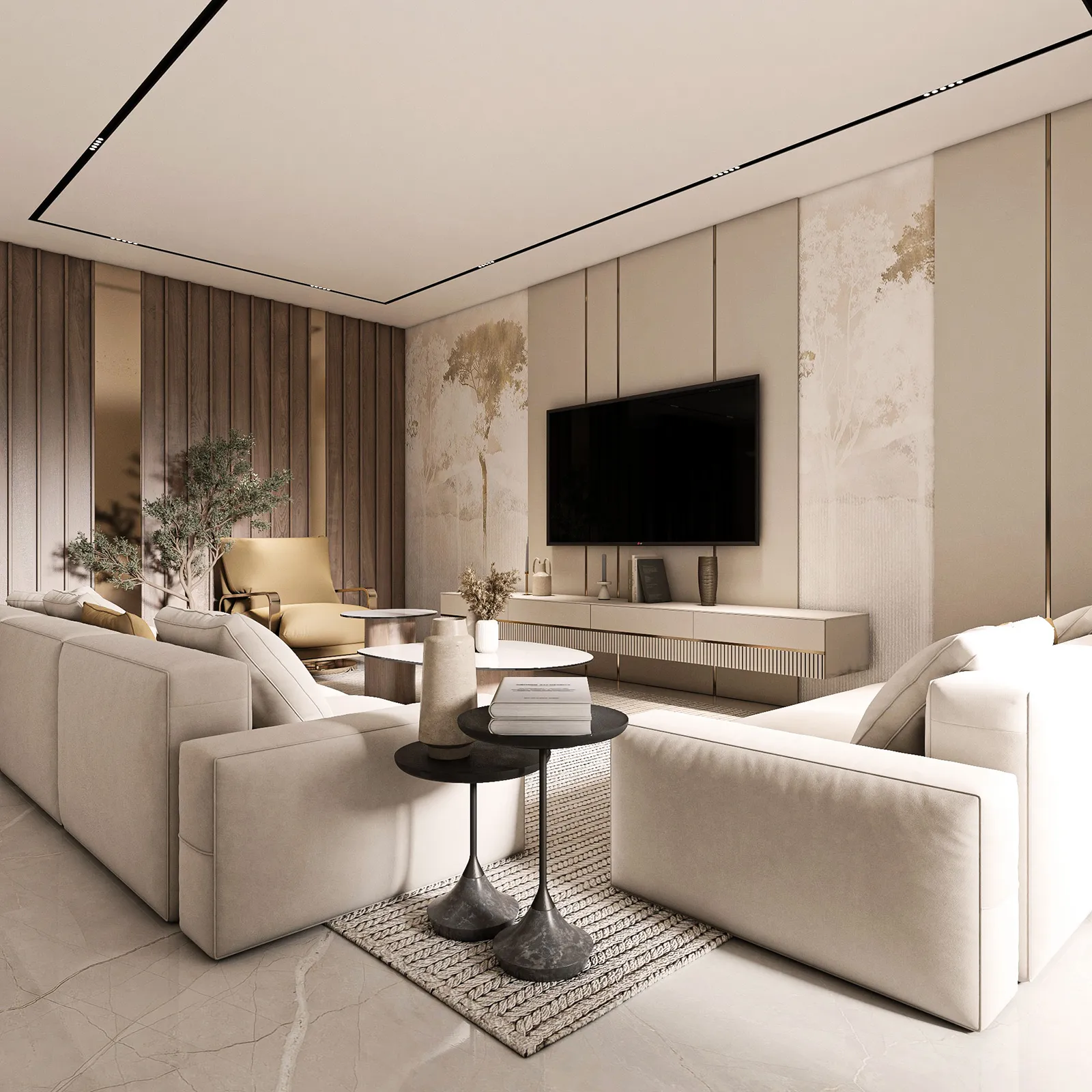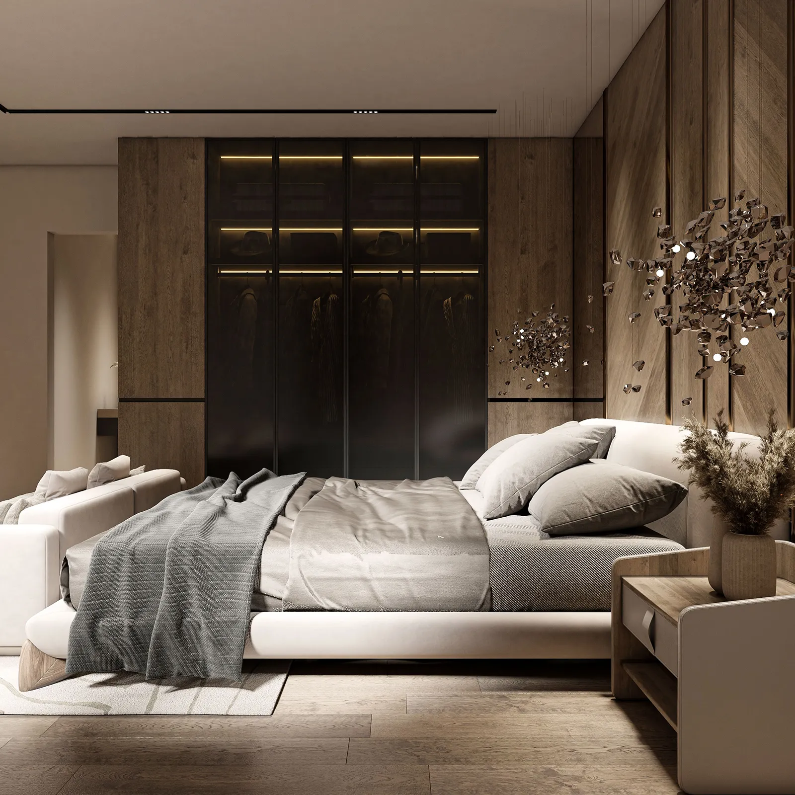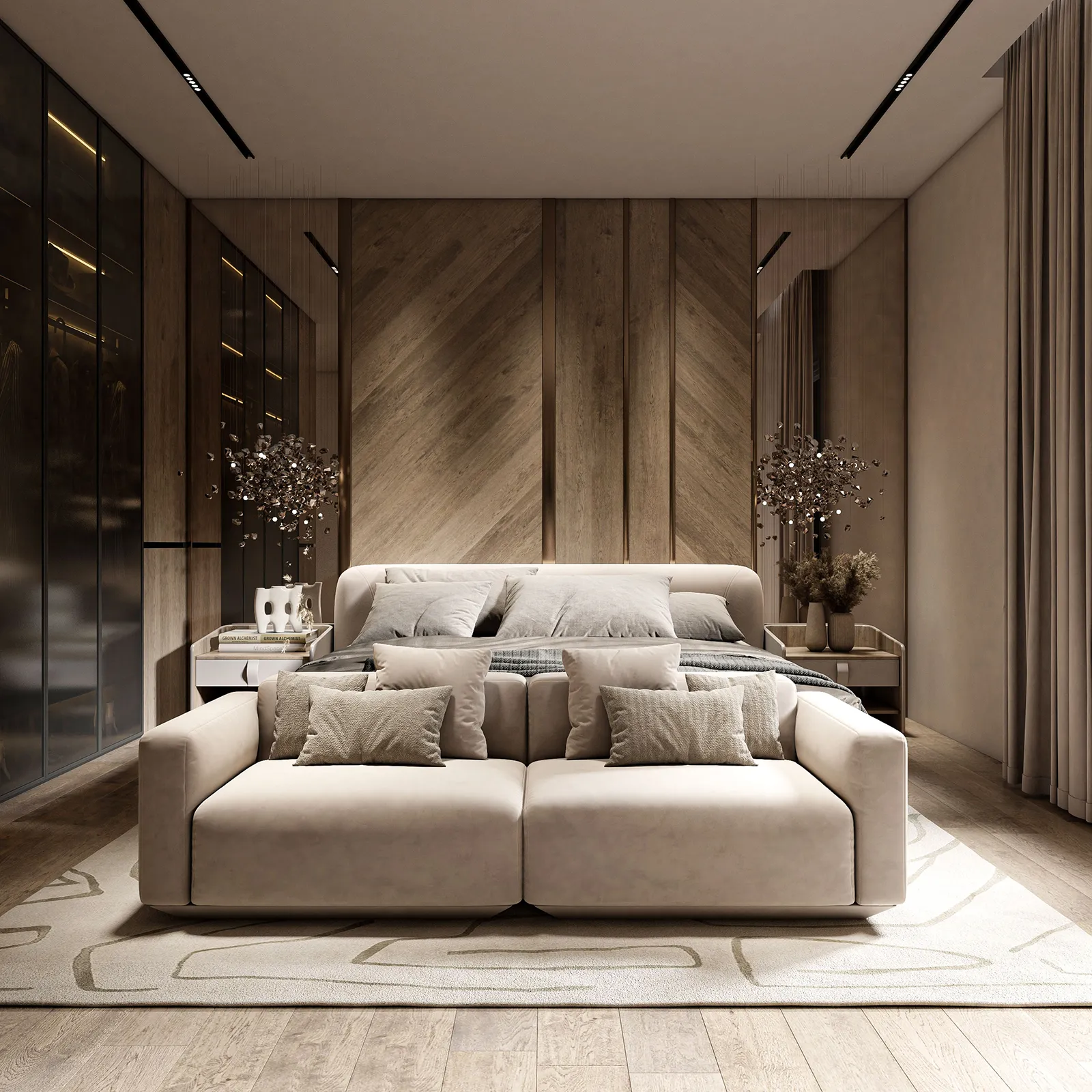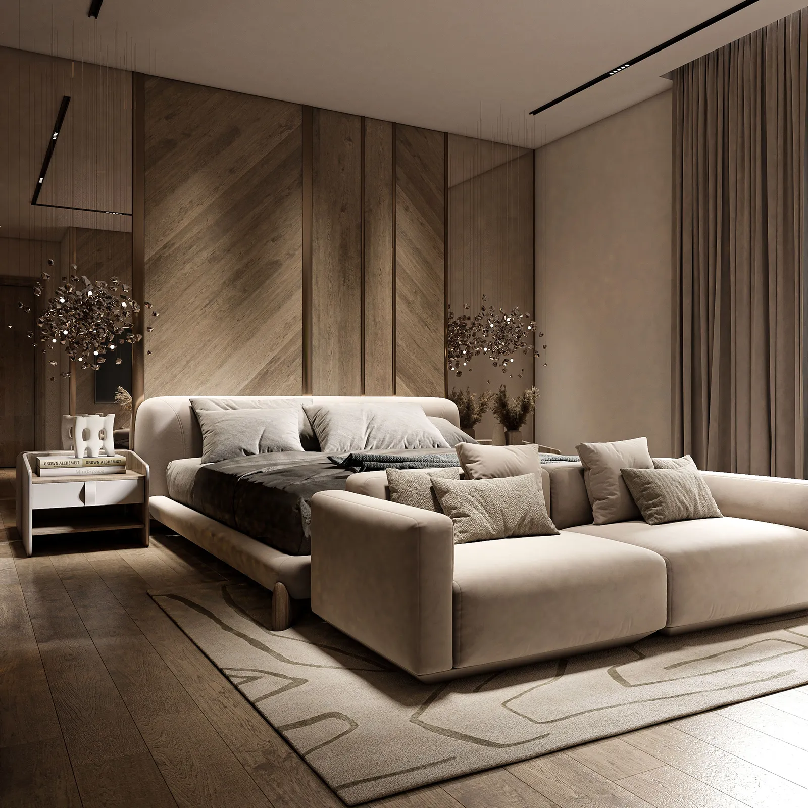 Sleek Modern Elegance — a refined and contemporary aesthetic characterized by clean lines, sophisticated textures, and a harmonious blend of natural and luxurious elements, designed for comfortable daily living.