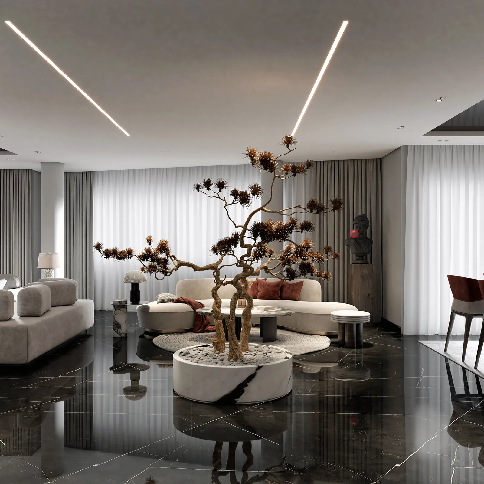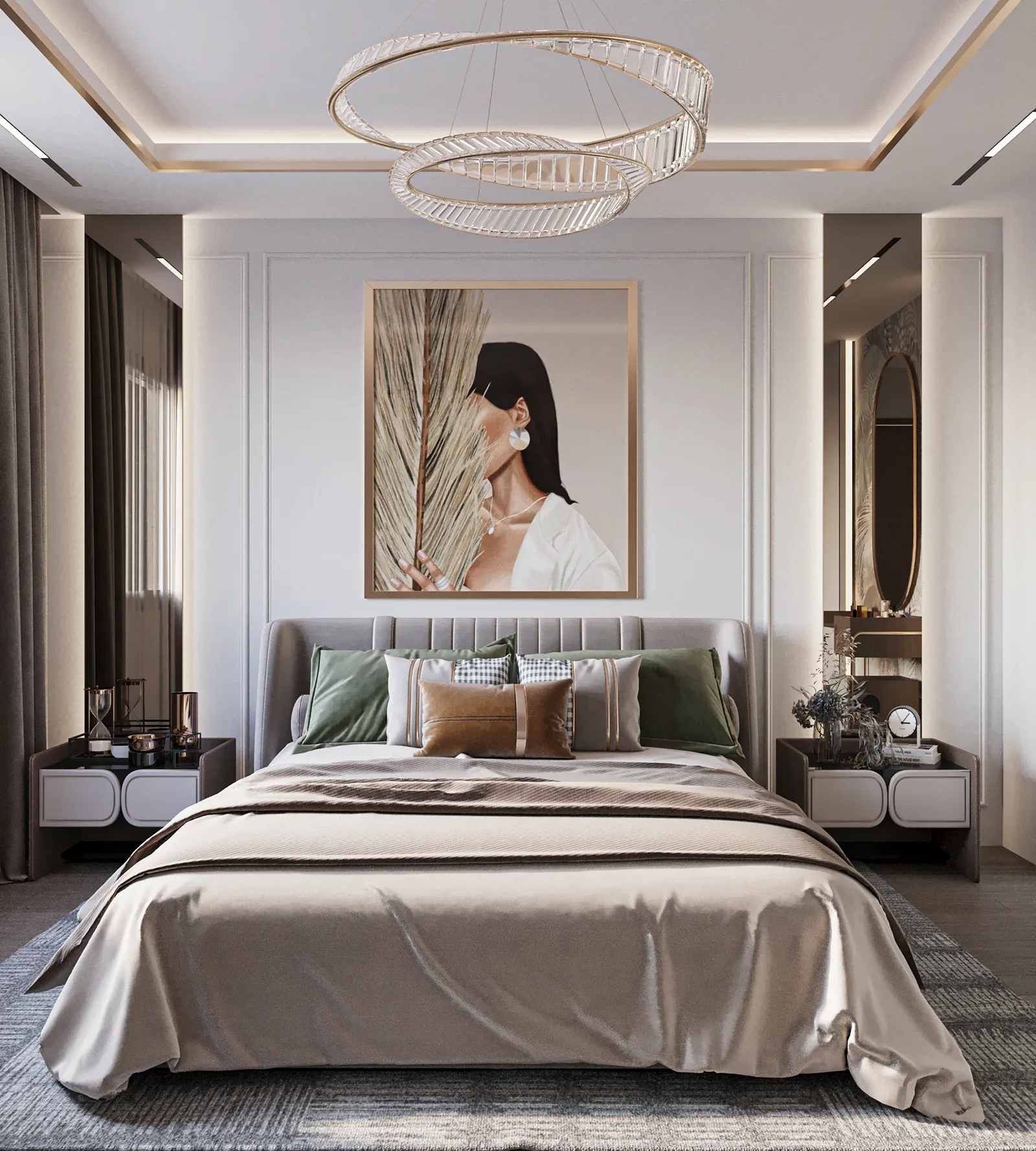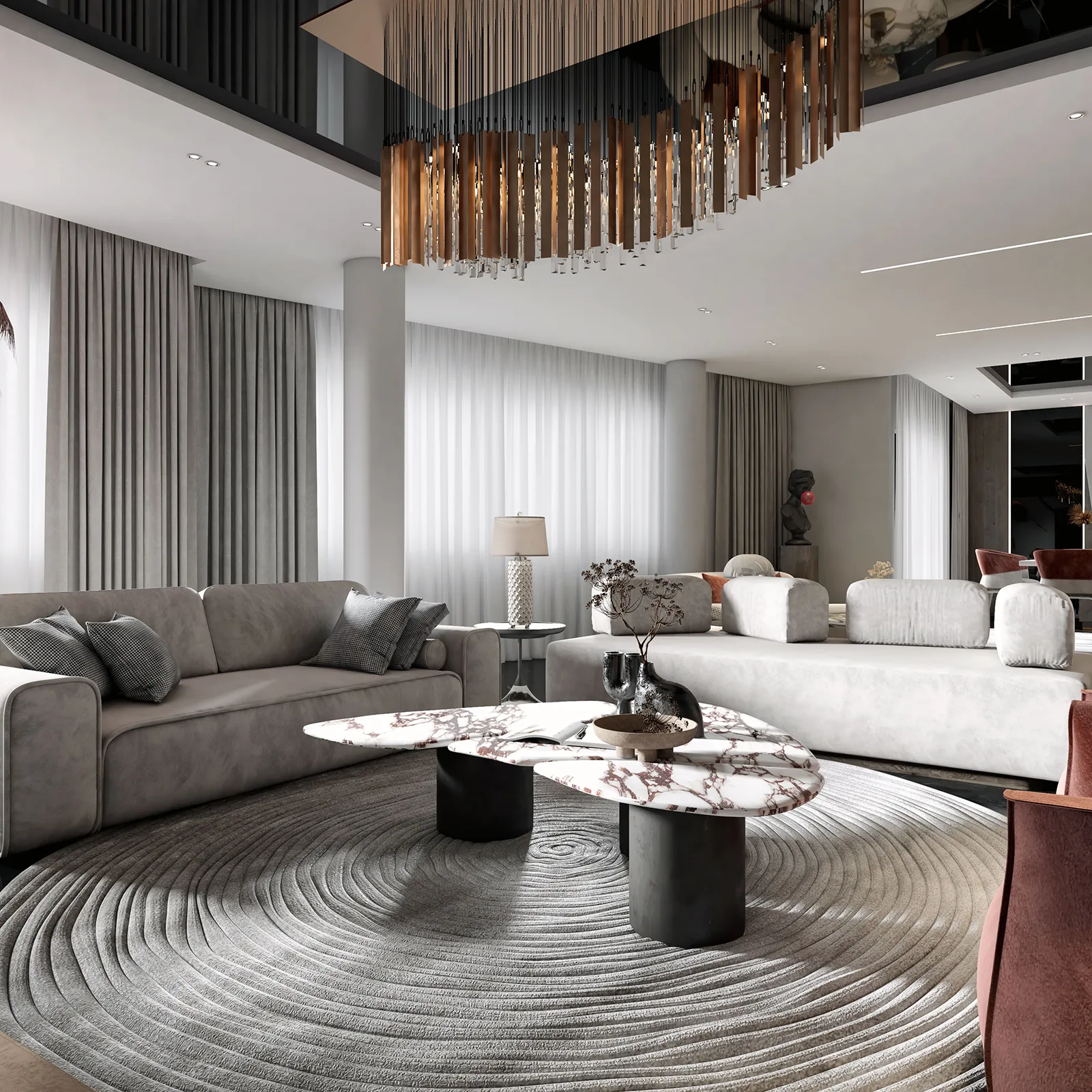 Refined Luxury with Modern Touches — a sophisticated and serene aesthetic that balances bold contrasts with warm, inviting elements, designed for comfort and smart living.