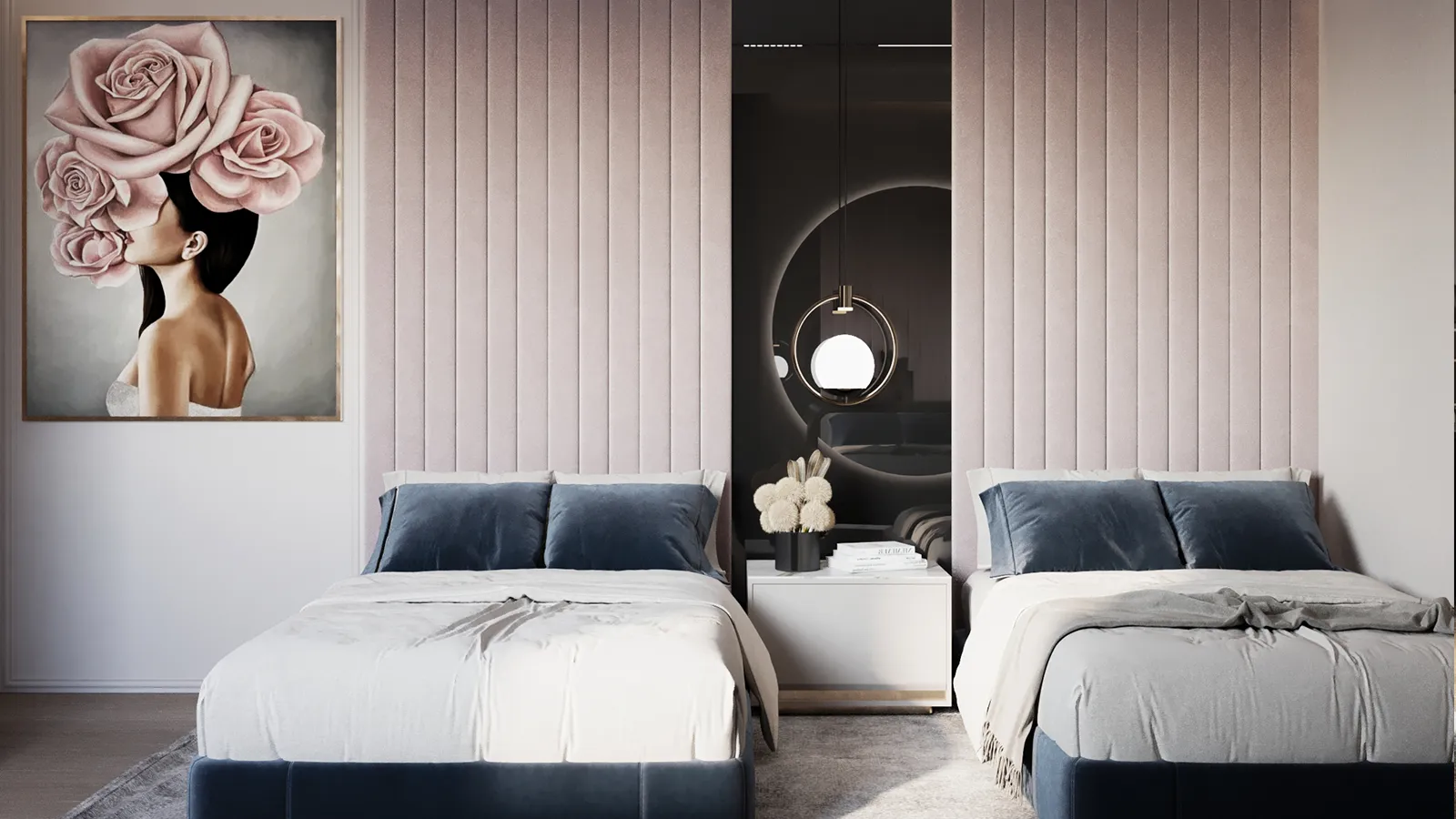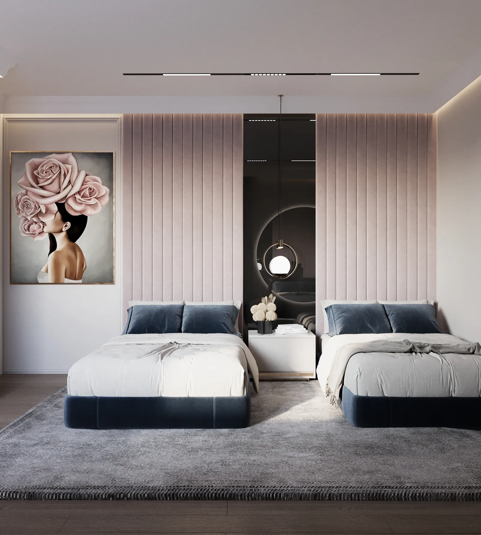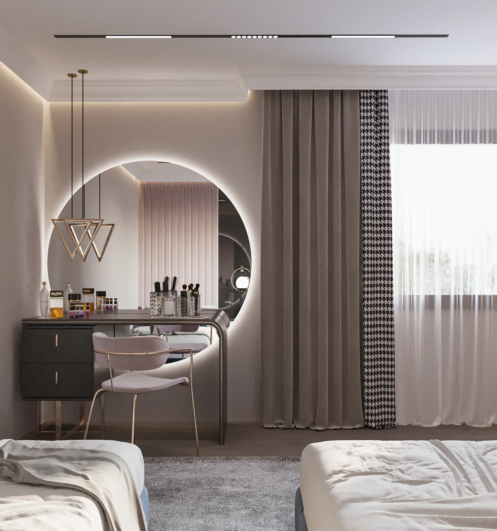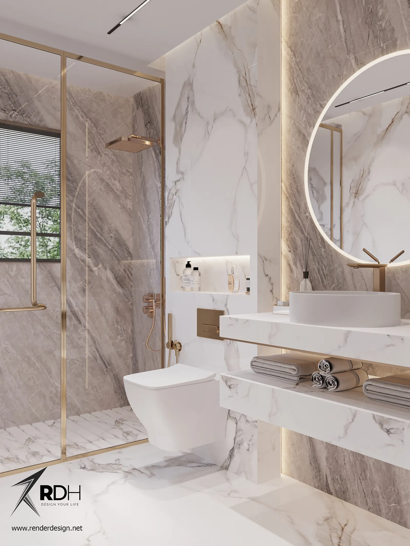 Rooted in quiet luxury and comfort, the Rehab apartment exudes a serene, collected spirit. Shadows dance gently across Nero Marquina floors, while soft lighting and warm oak tones invite stillness. The stretch ceiling subtly mirrors the room, expanding its calm. It’s a space that doesn’t speak loudly—yet says everything with intention. A refined retreat for modern living.