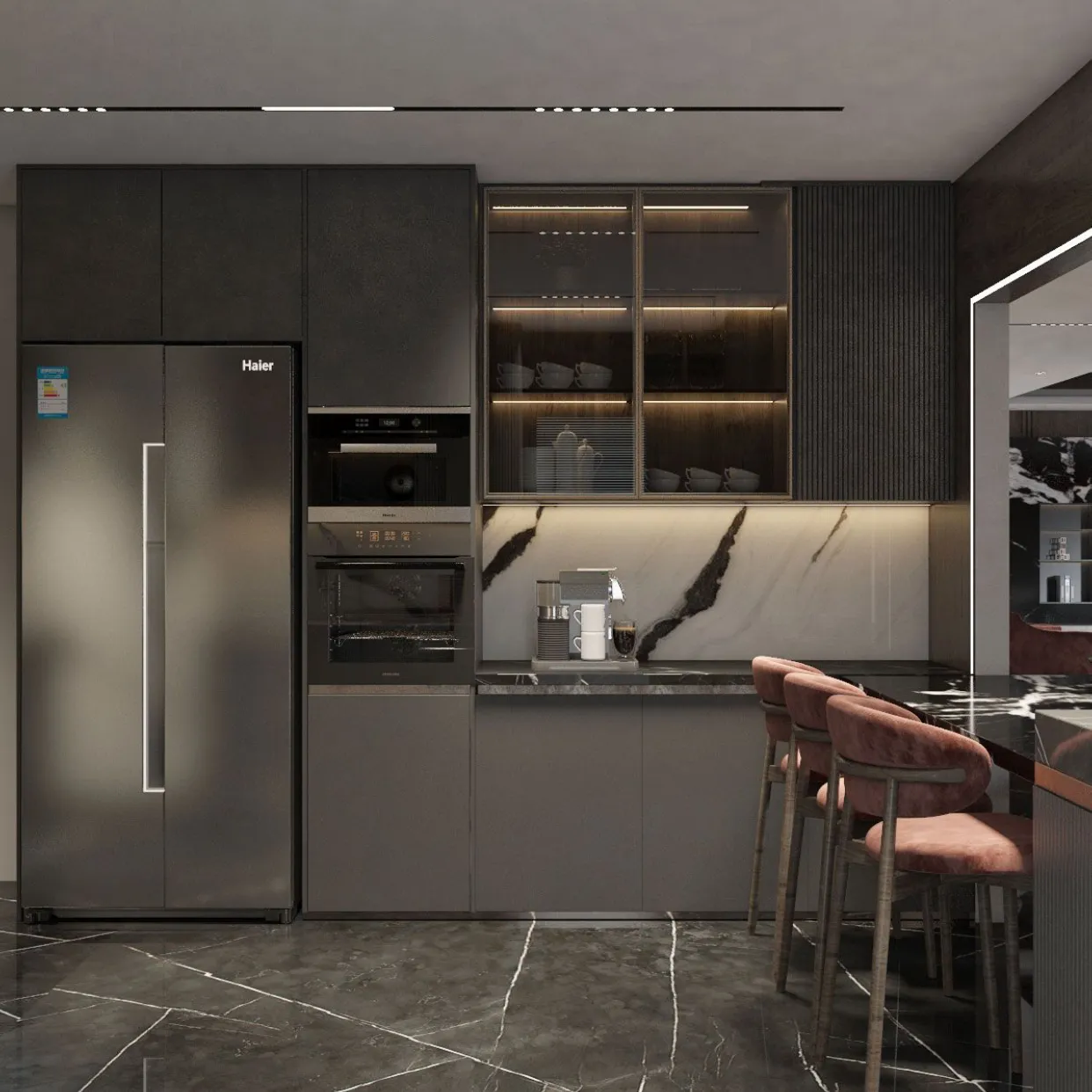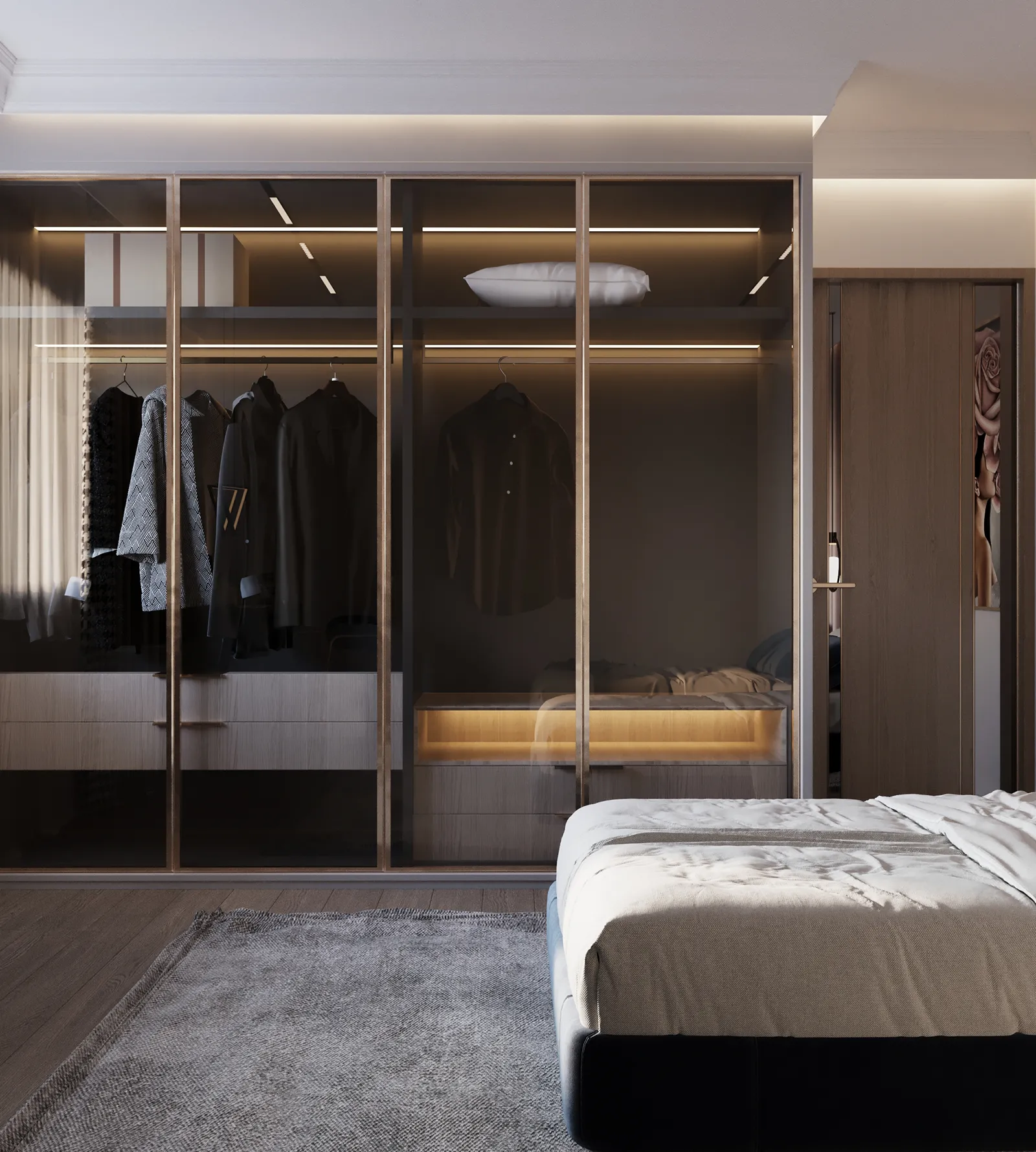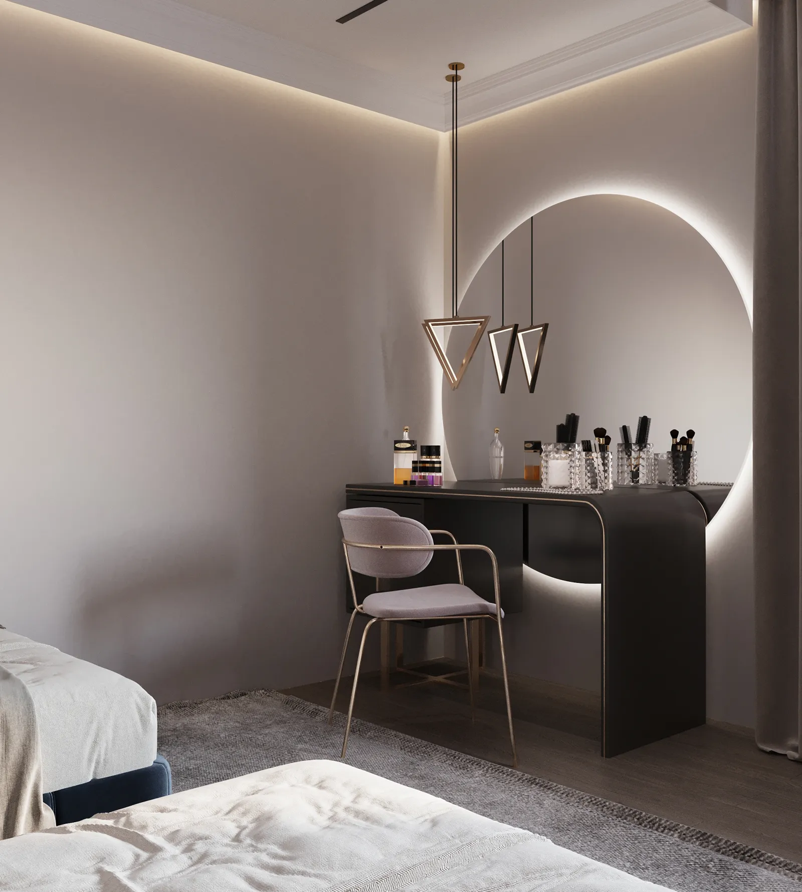 - Tailored storage solutions and hidden lighting maintain a clean, clutter-free aesthetic.