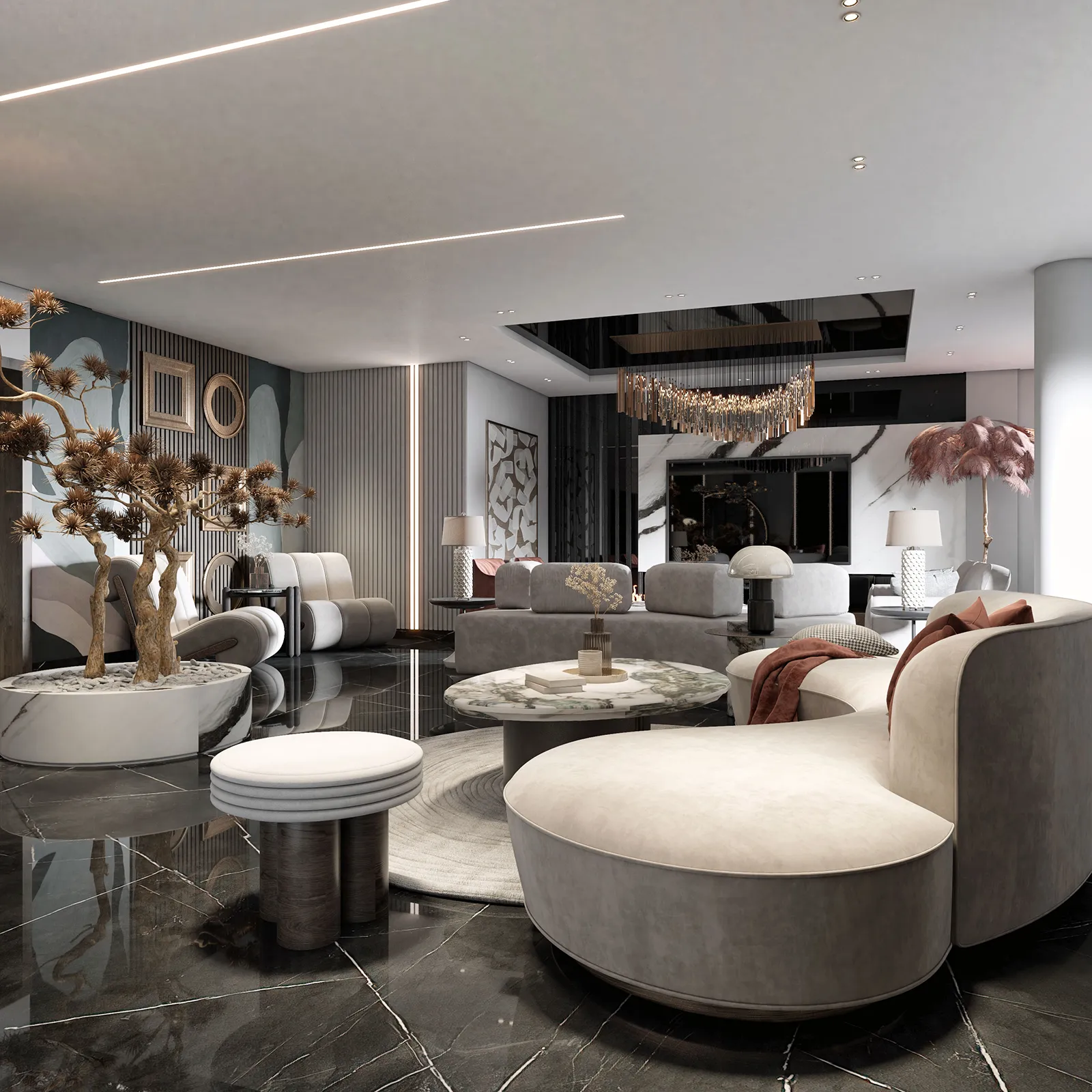 This exceptional project, the El Rehab Apartment, was conceived for a truly distinguished client: one of the world’s most renowned cosmetic surgeons, a U.S. citizen, along with his equally accomplished wife and children, all part of a prominent medical family. Having spent a lifetime between America and the Gulf, our client decided to embark on a new chapter, choosing to return to Egypt for his retirement. His vision was clear: a home that was not only incredibly cozy but also exuded an undeniable elegance, seamlessly blending luxury with the practicalities of smart living.