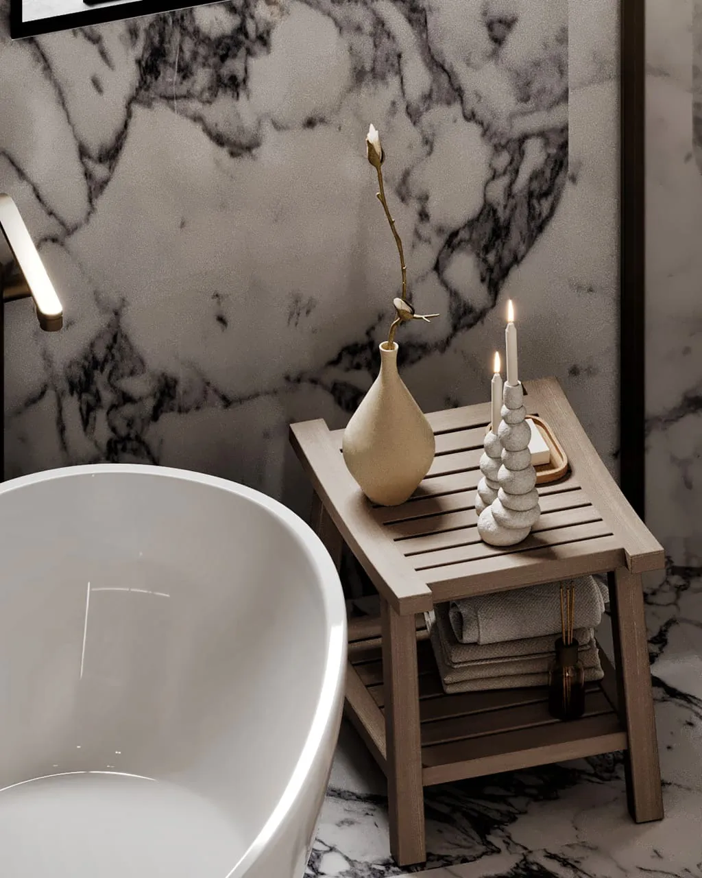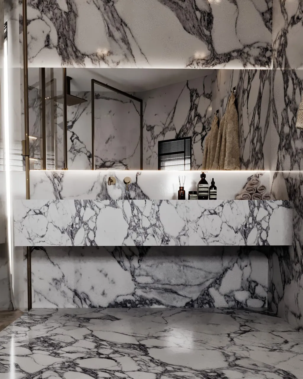 The design was an answer to this profound need. We created a bedroom that is a cocoon of calm, with every element—from the soft fabric of the bed to the subtle lighting—designed to reduce noise and stress. The renovation’s true heart, however, lies in its seamless connection to the new master bathroom. This space was crafted as an extension of the sanctuary itself, a luxurious, integrated ‘wet room’ where the ritual of a shower or bath becomes a spa-like experience. The juxtaposition of the serene, soft bedroom and the high-contrast, bold bathroom reflects a deeper harmony: a balance between tranquility and an appreciation for dramatic, beautiful design. The final result is a master suite that feels not only like a home, but like a personal refuge, a reward for a life of hard work.
