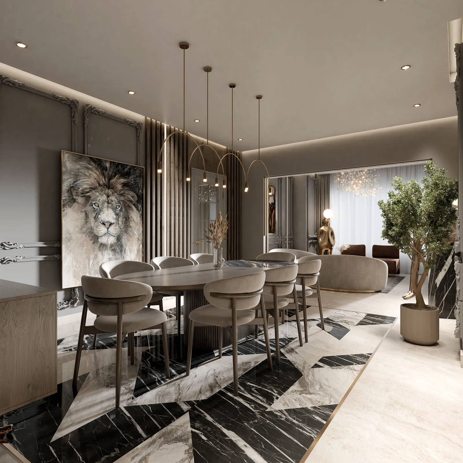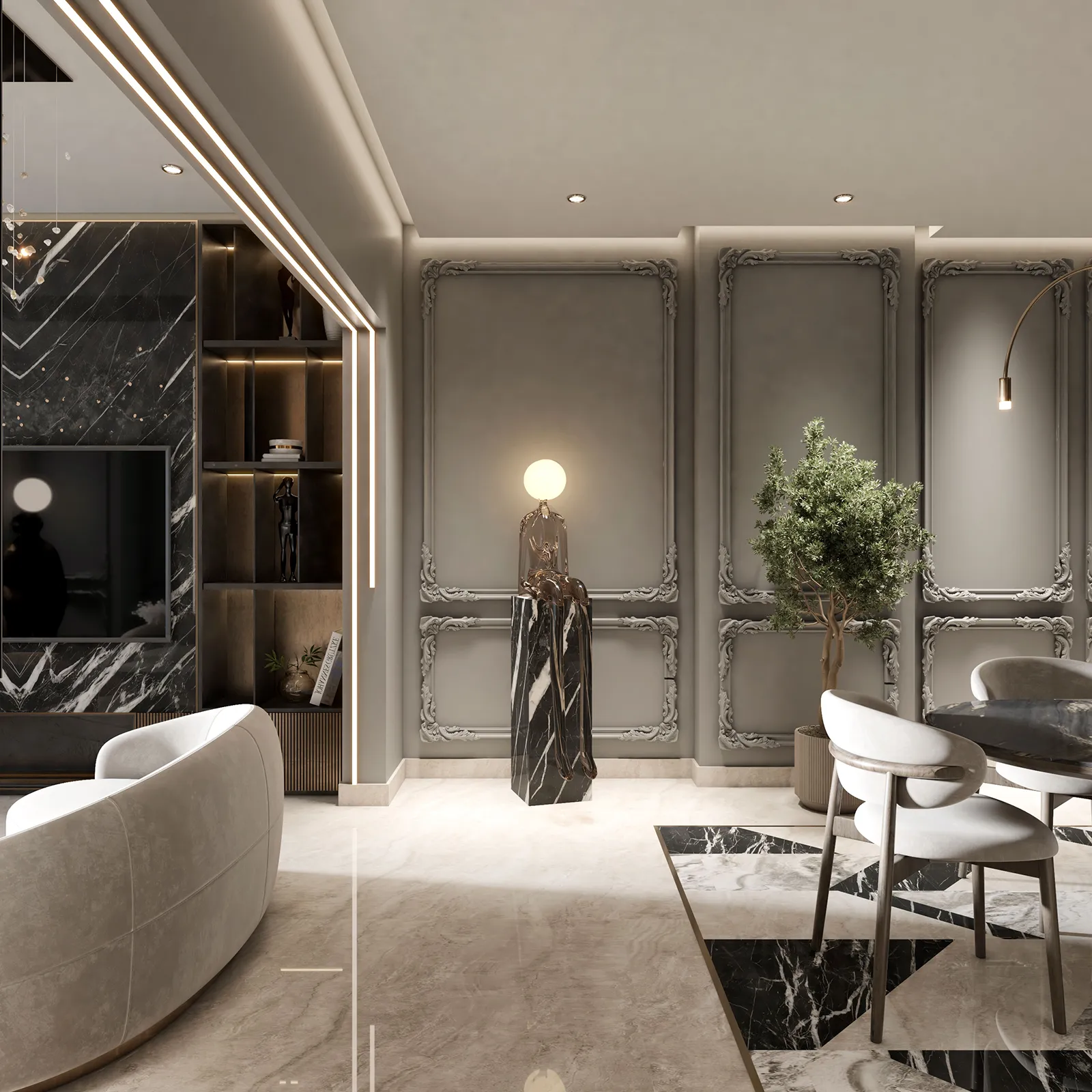 For this apartment overlooking the Nile, our vision was to create a home that was a profound statement of status and sophistication. We aimed to design a space worthy of a diplomat, blending the timeless elegance of classical architecture with the bold, refined edge of modern luxury. The goal was to craft a residence that is both a private sanctuary for quiet contemplation and a commanding setting for formal entertainment, where every detail speaks of a life well-traveled and a taste for the exquisite.