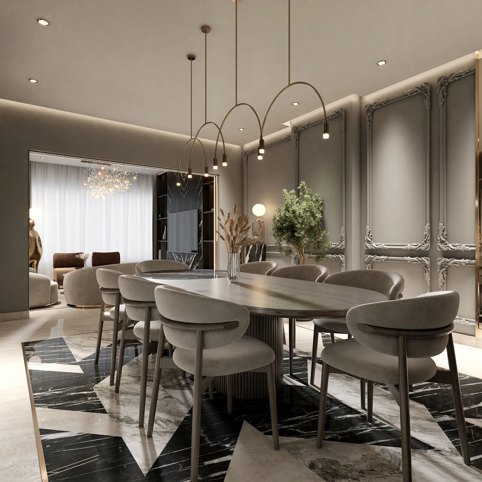 The soul of this residence is expressed through a lavish material palette, chosen for its richness and ability to create a sense of enduring luxury.