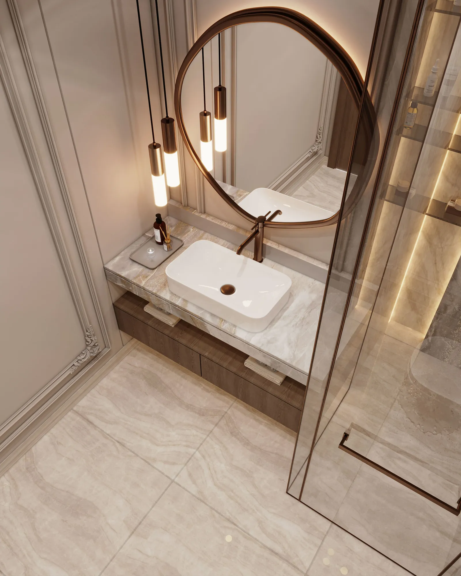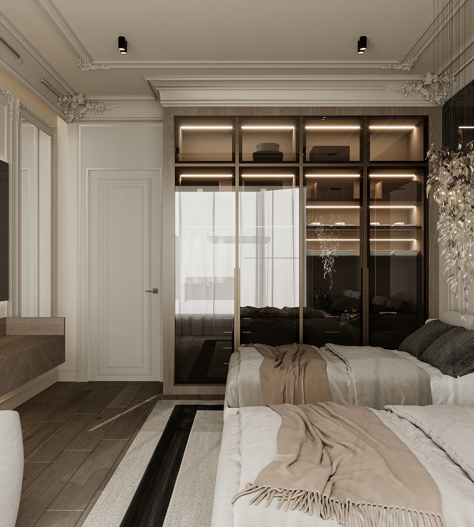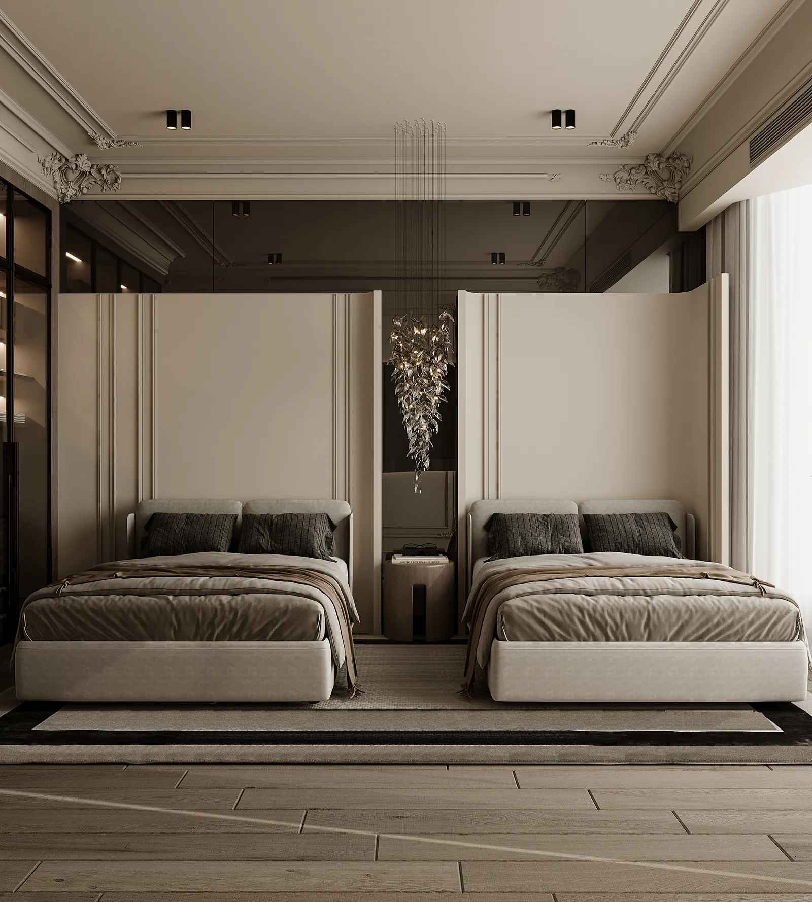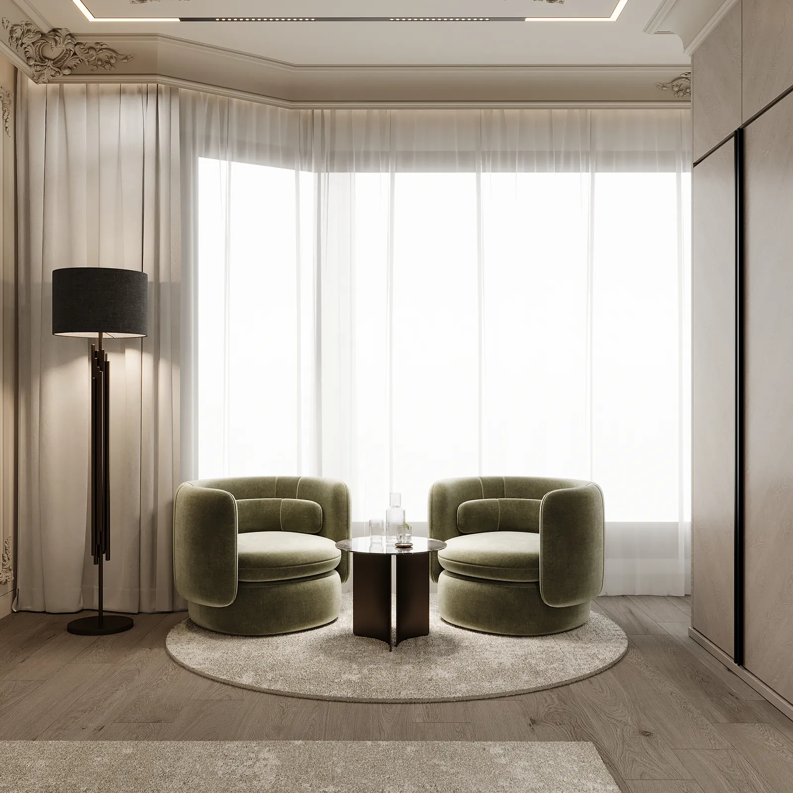 While the public areas celebrate this classical sophistication, the private bedrooms transition into serene, modern retreats designed for rest. Every detail, from the curated furniture to the custom finishes, was tailored to the client’s stature and lifestyle. The result is a quiet yet powerful expression of refined taste—a perfect French-inspired sanctuary on the Nile for a global citizen to call home.