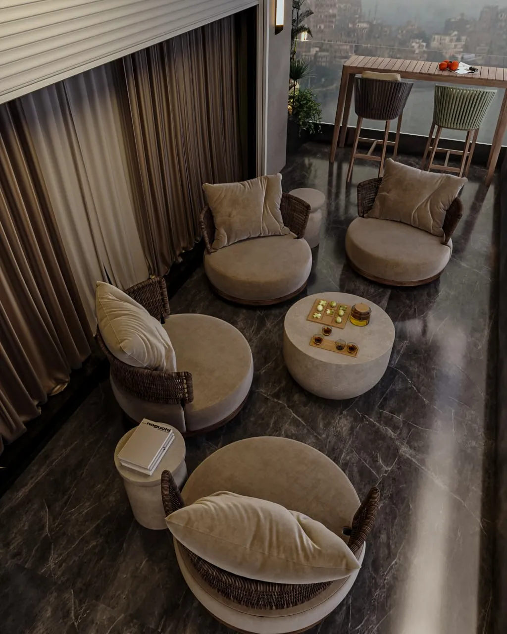 For a distinguished diplomat with homes across the globe, the ultimate desire was to create a personal haven in Egypt—a residence on the Nile that would blend timeless elegance with a touch of Parisian chic. This was to be more than just a house; it was to be a statement of quiet luxury and cultural sophistication.