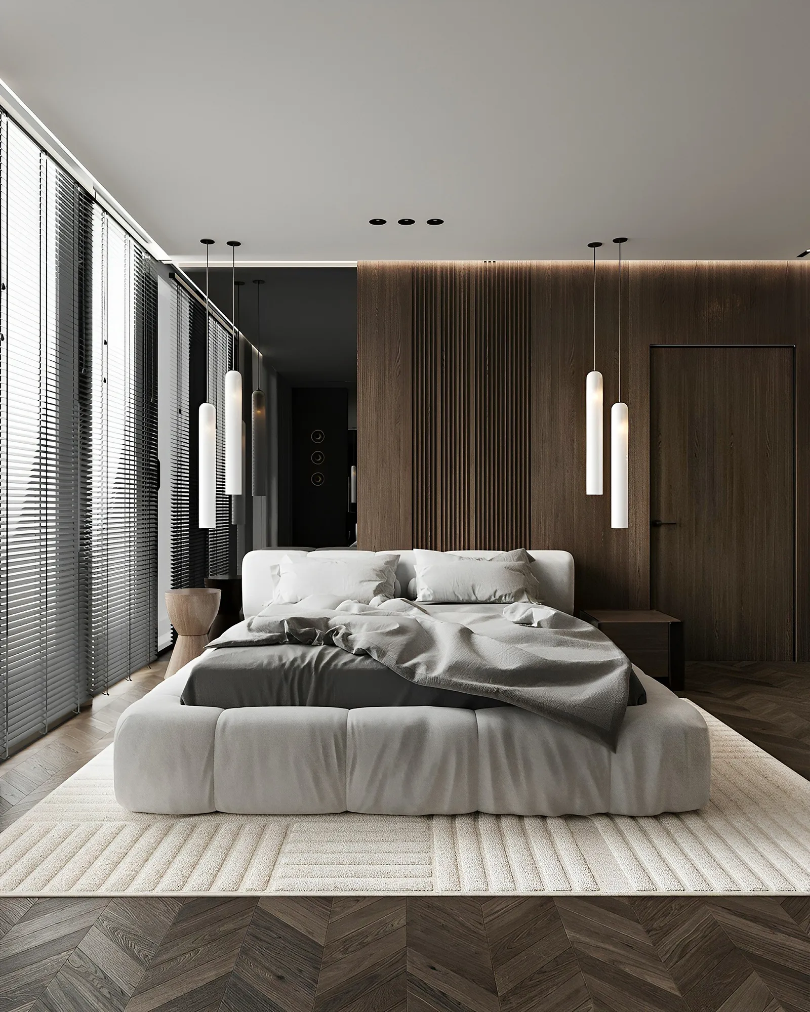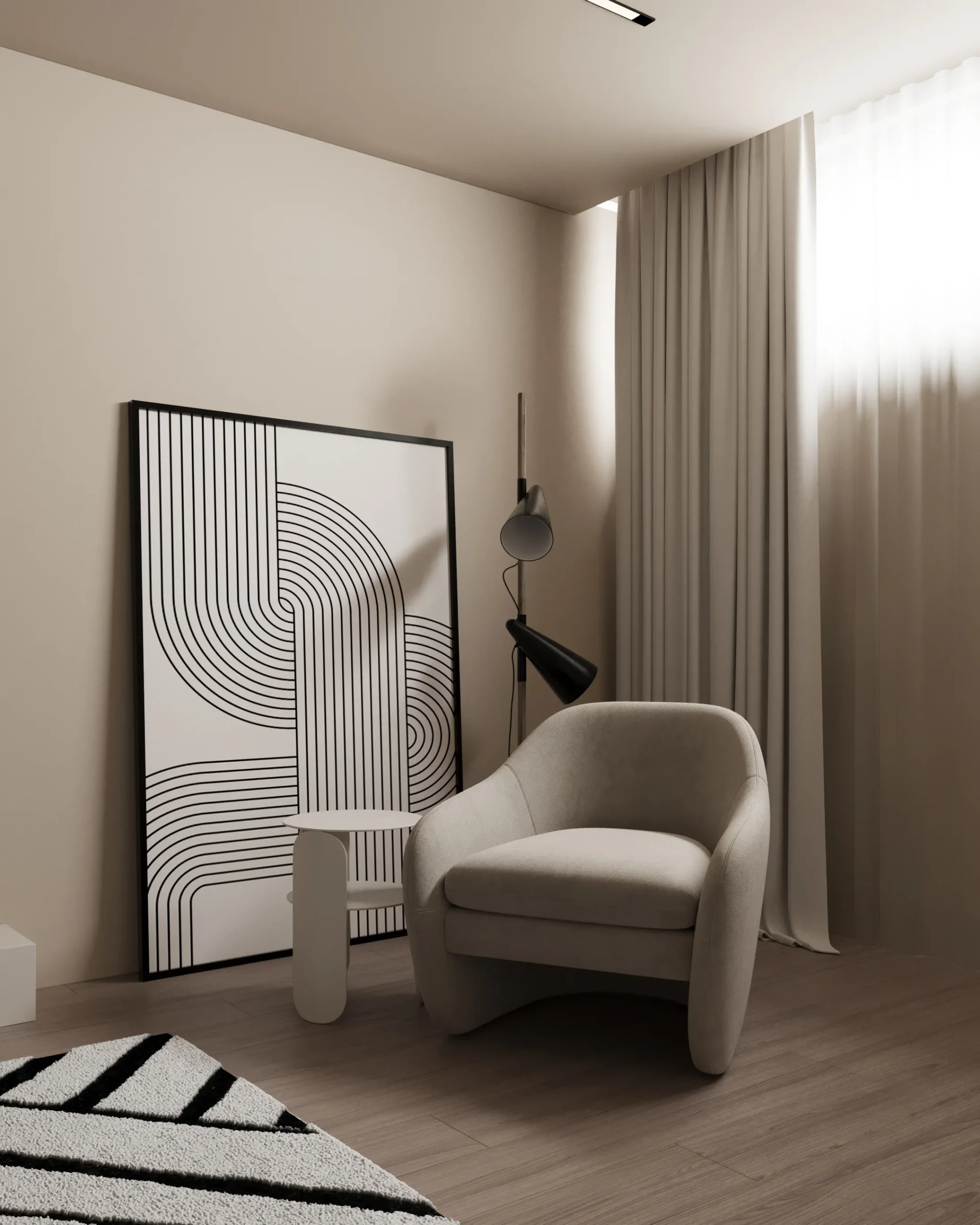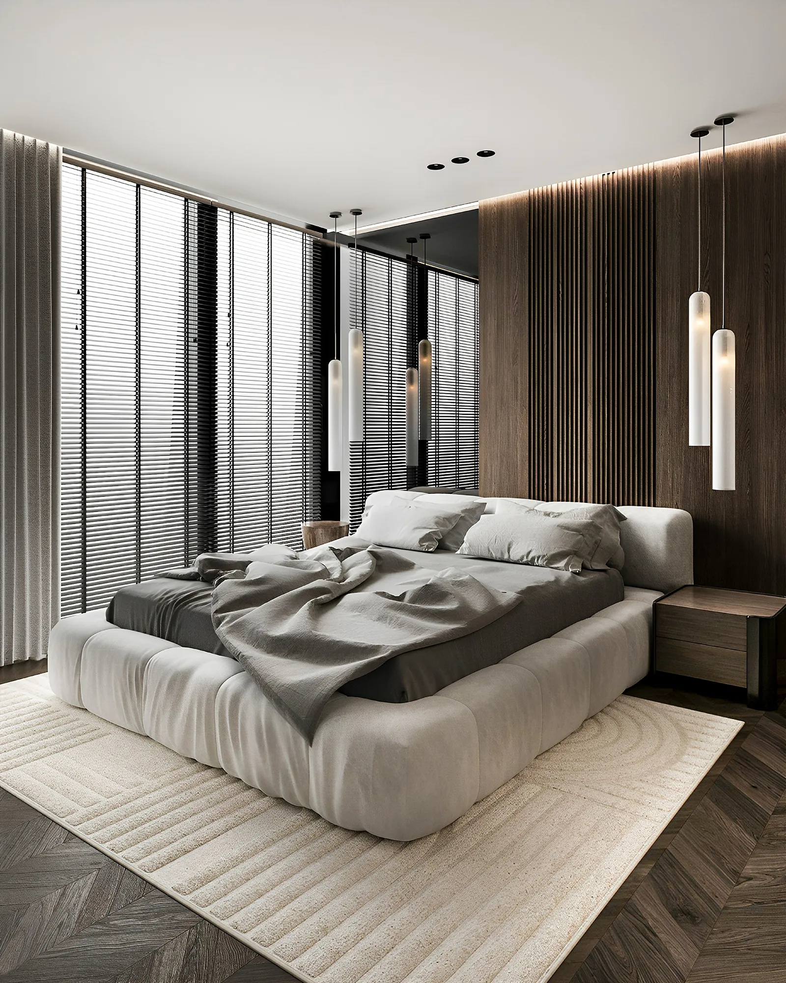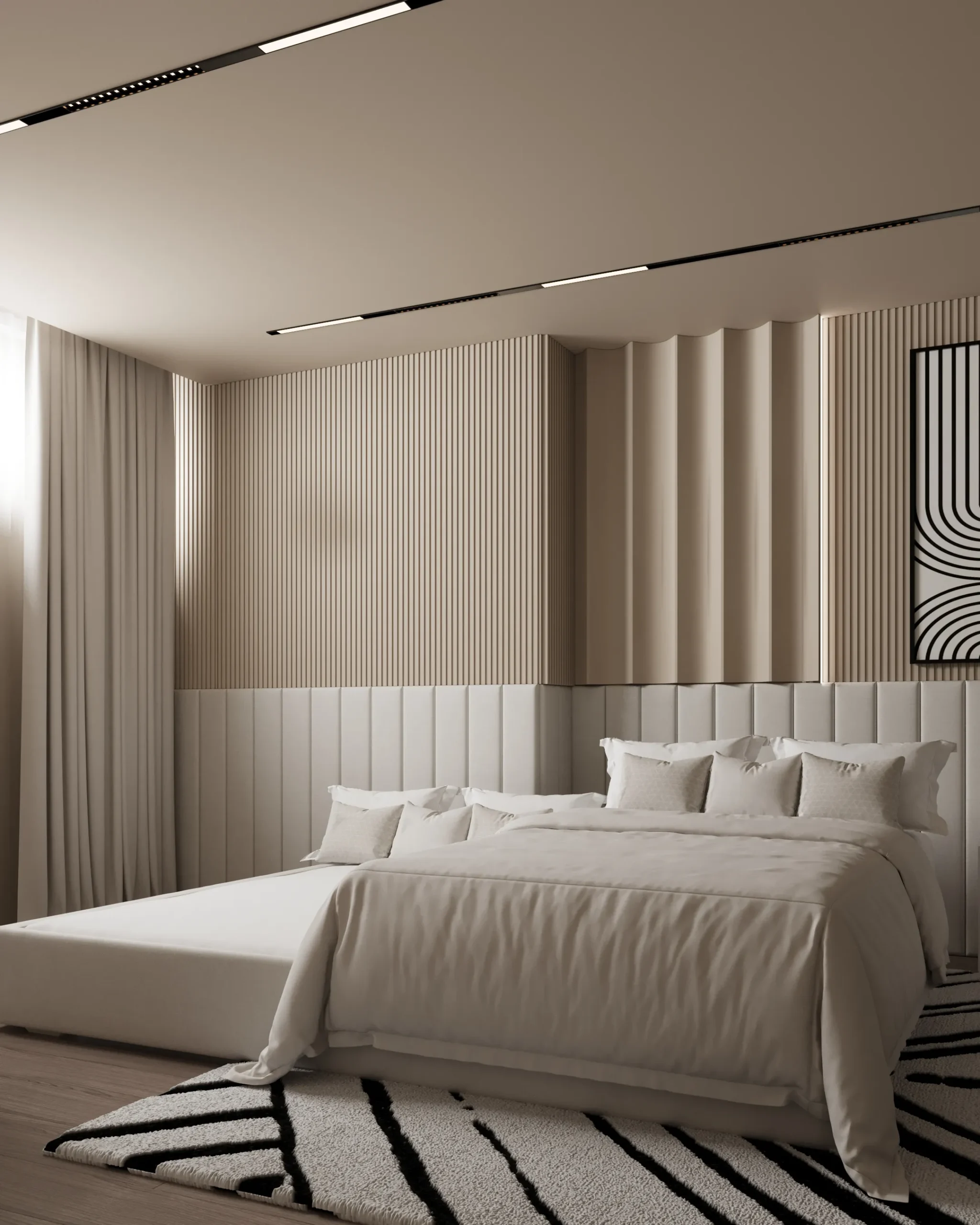 Style: Contemporary with subtle luxury — a clean, composed aesthetic rooted in simplicity, contrast, and texture, with modern detailing, tactile materials, and curated pattern play.