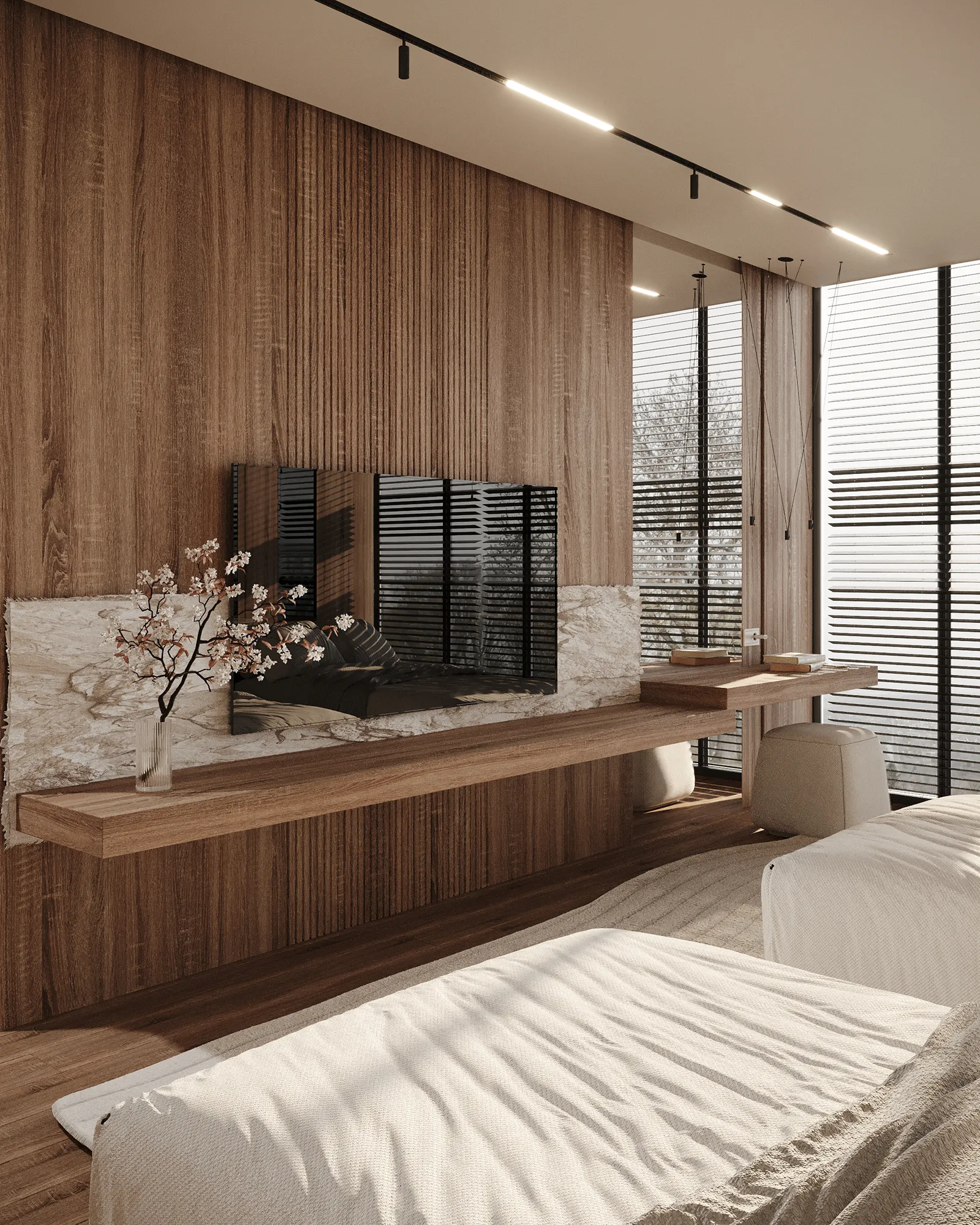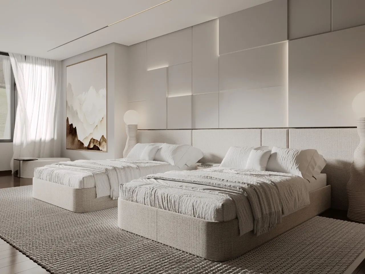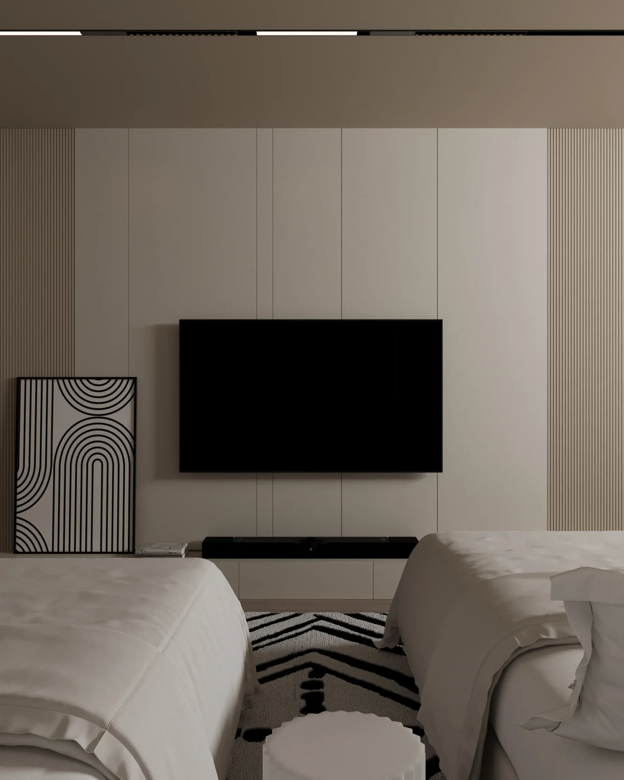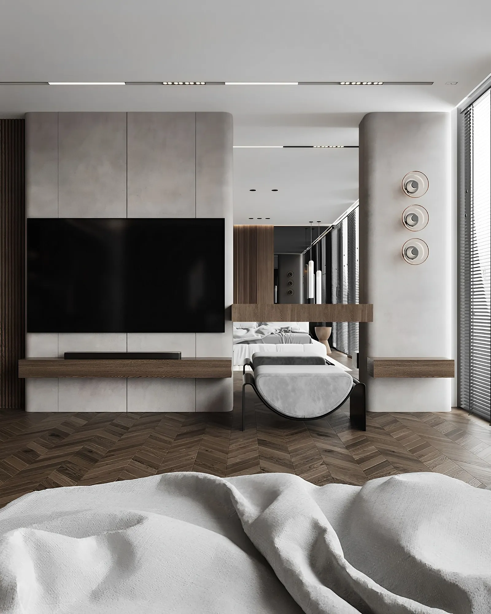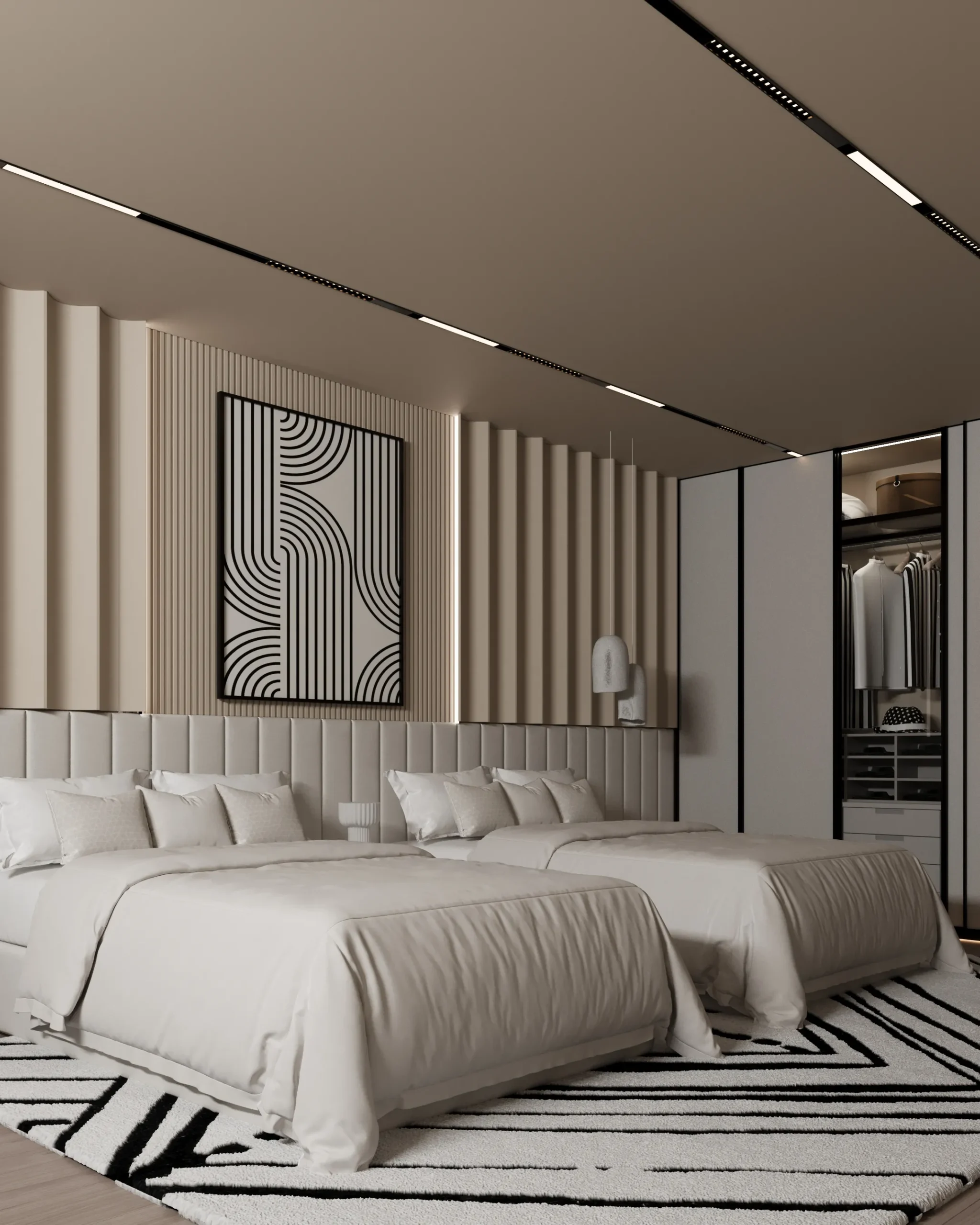 Style: Contemporary with subtle luxury — a clean, composed aesthetic rooted in simplicity, contrast, and texture, with modern detailing, tactile materials, and curated pattern play.