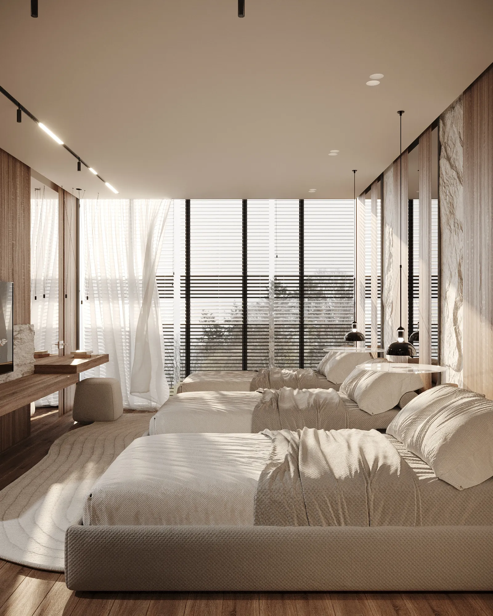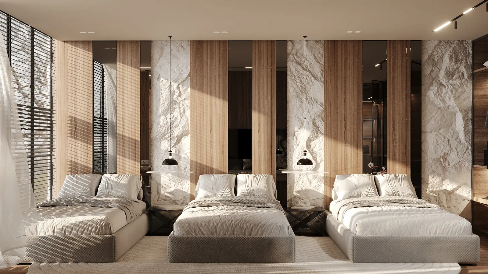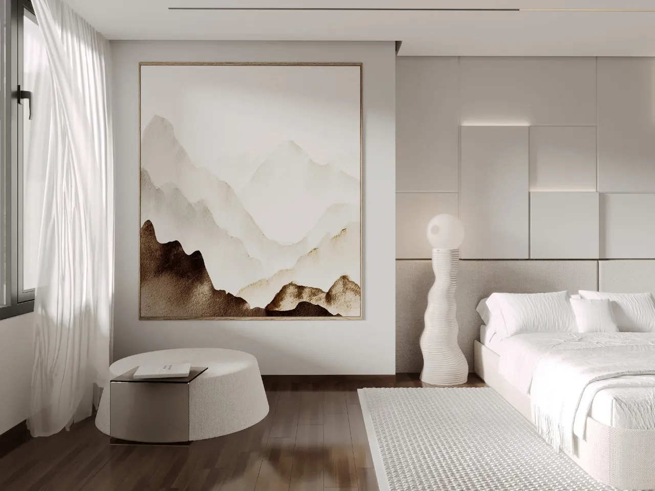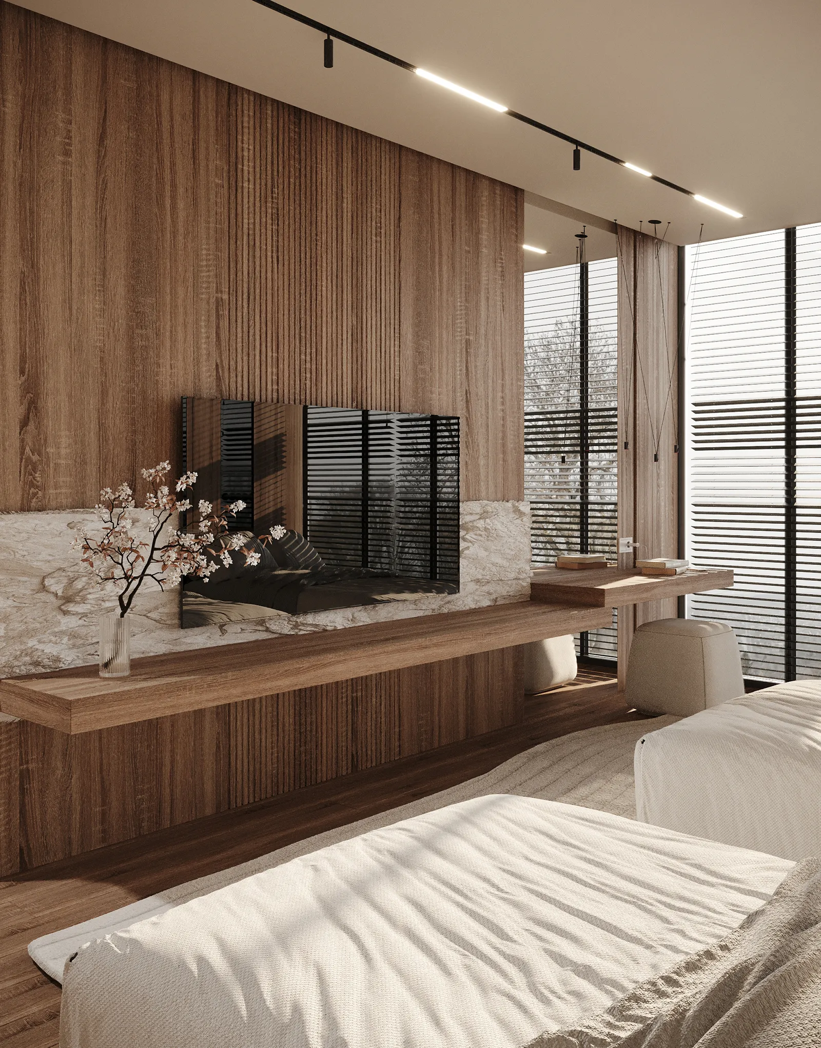 Style: Contemporary with subtle luxury — a clean, composed aesthetic rooted in simplicity, contrast, and texture, with modern detailing, tactile materials, and curated pattern play.