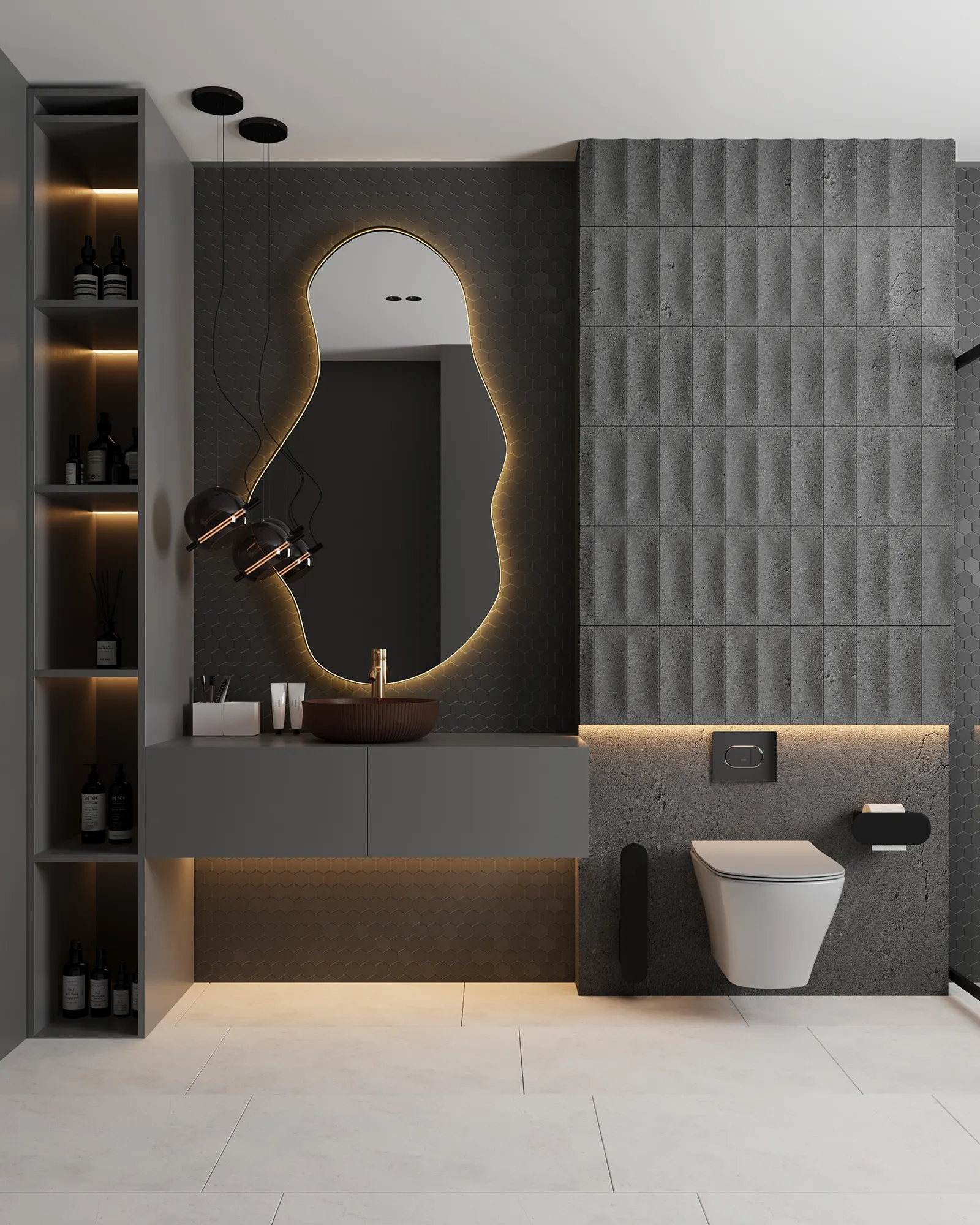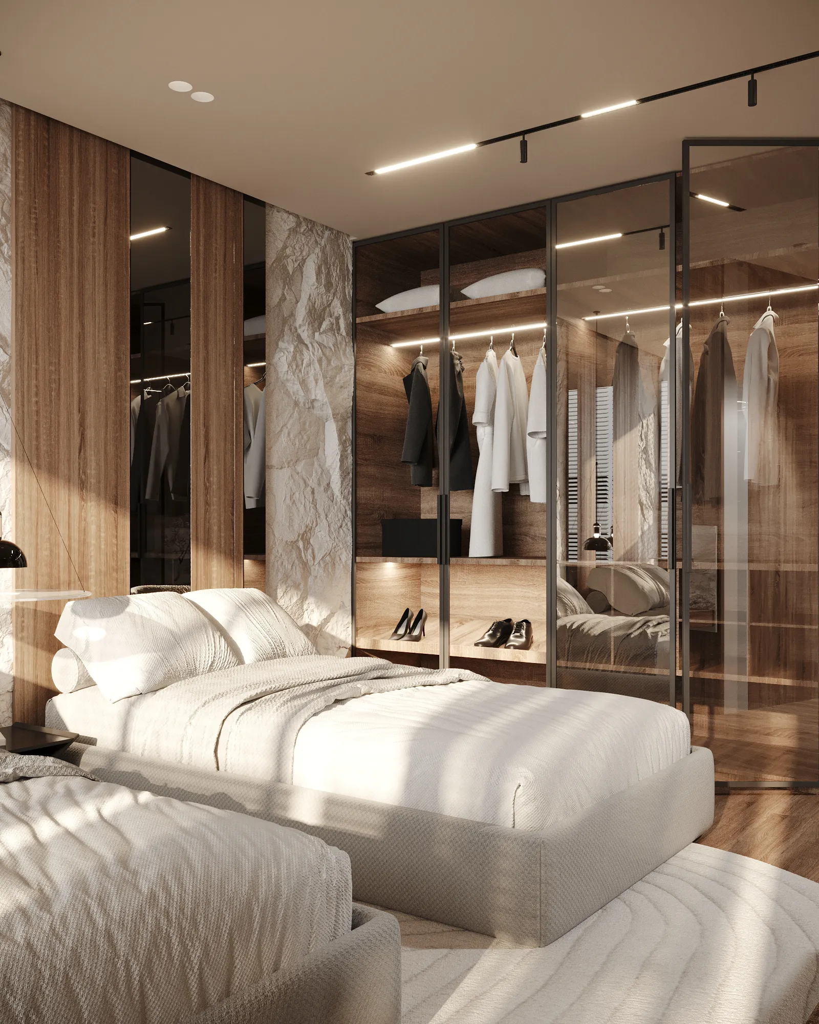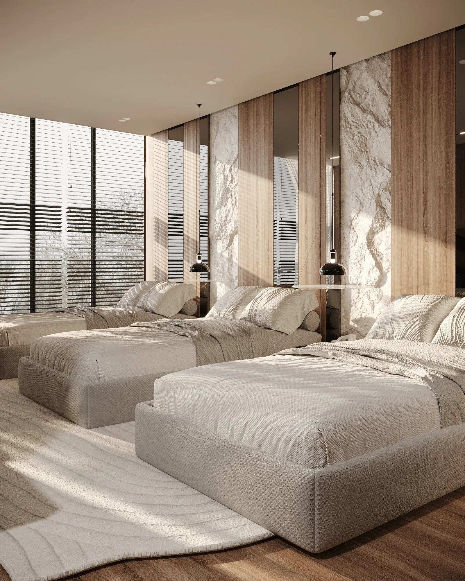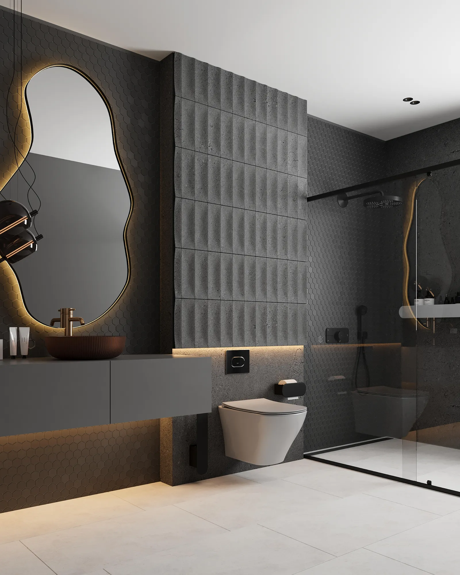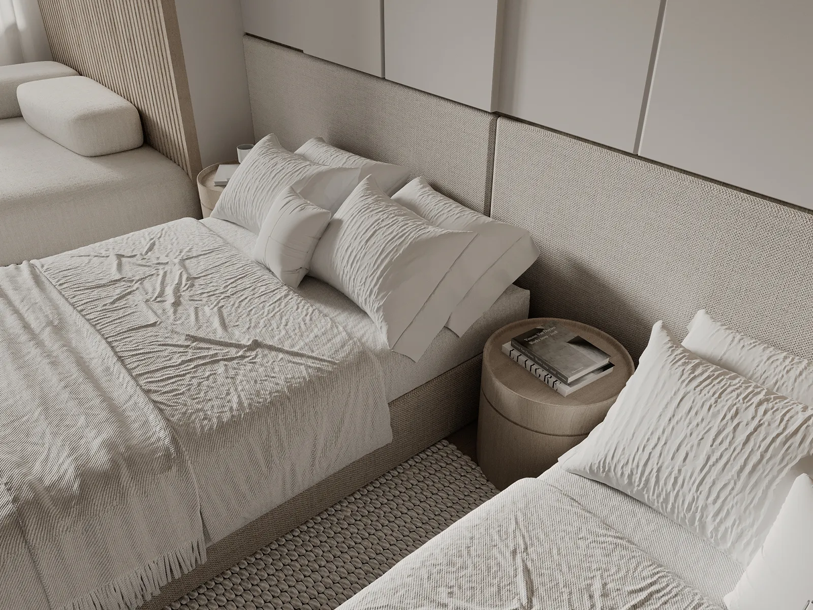 Style: Contemporary with subtle luxury — a clean, composed aesthetic rooted in simplicity, contrast, and texture, with modern detailing, tactile materials, and curated pattern play.