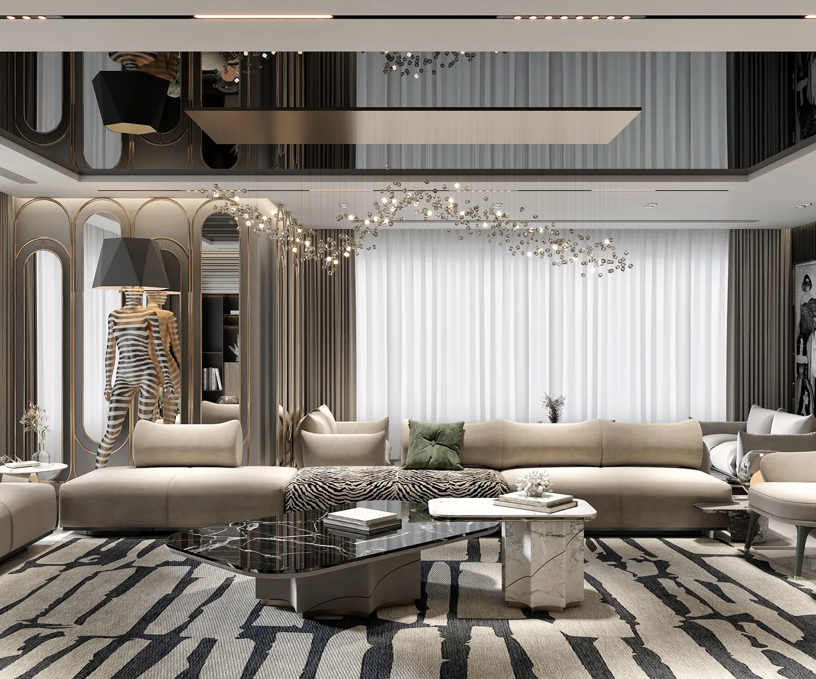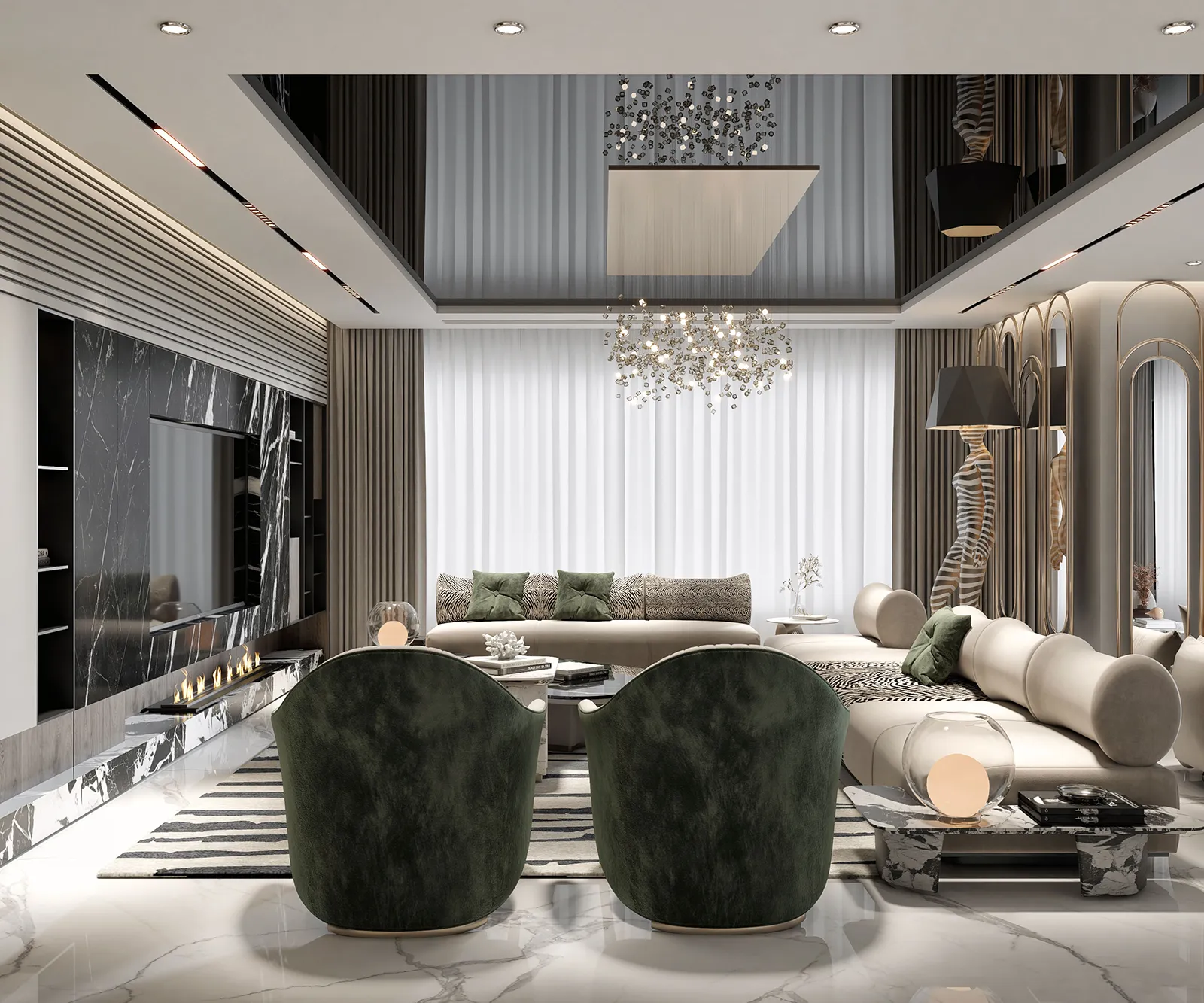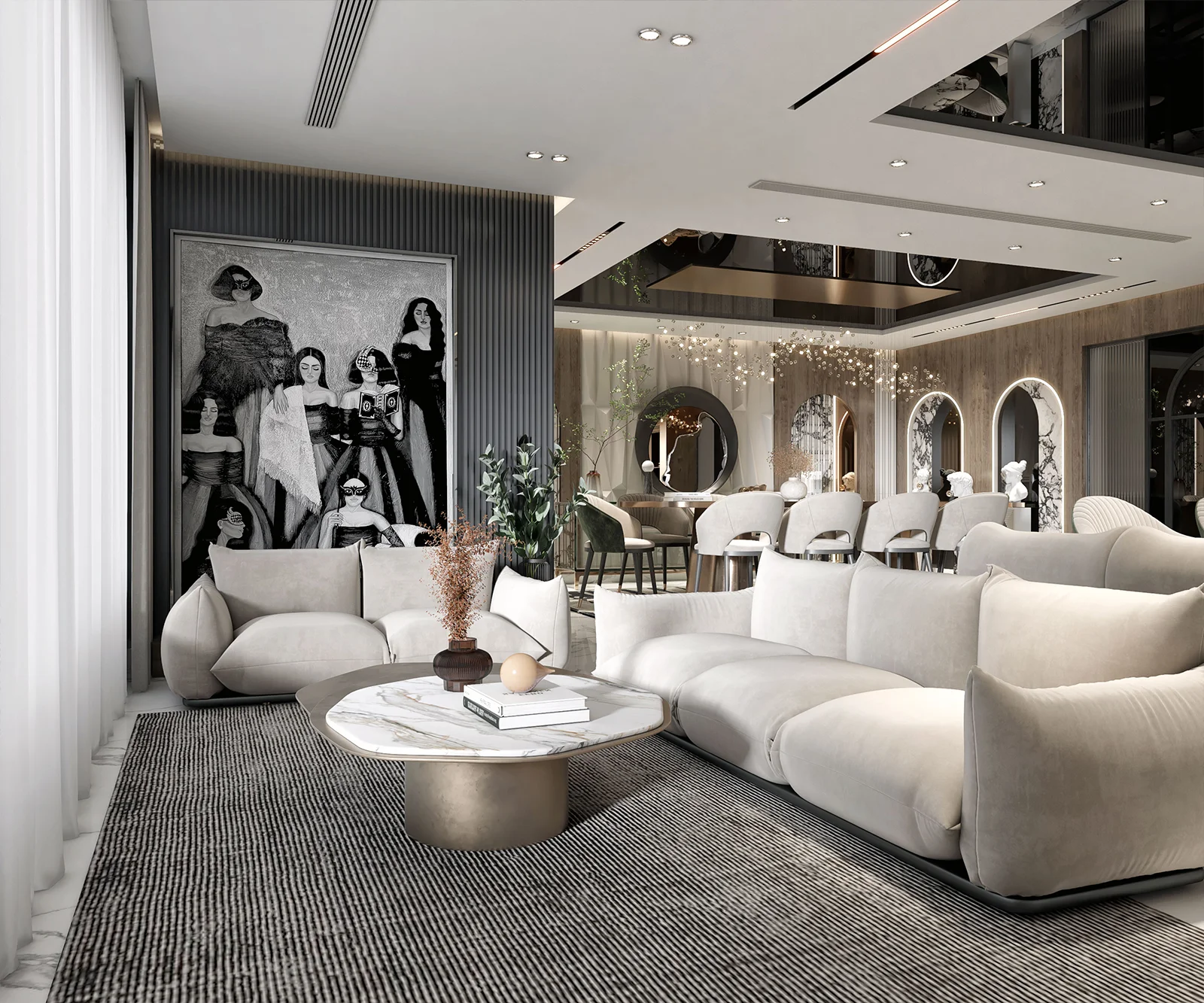 Turnkey delivery, A Complete interior design, fit-out execution, custom furnishing, and styling across all zones of the residence.